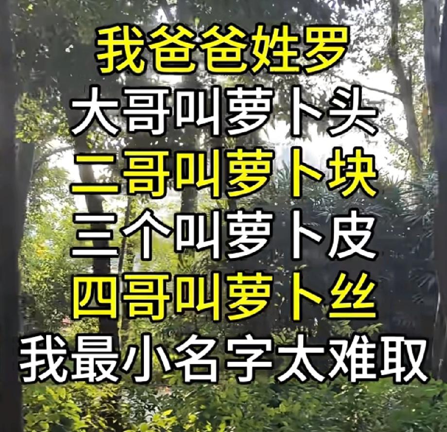 爸爸姓罗,大哥叫萝卜头,二哥叫萝卜块,我叫啥?