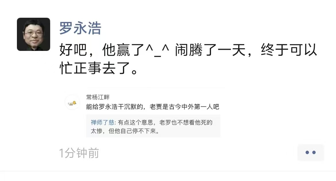 罗永浩尚未回应贾国龙回应了回应了,老罗单方面宣布,贾国龙赢了目前两账号均已禁言
