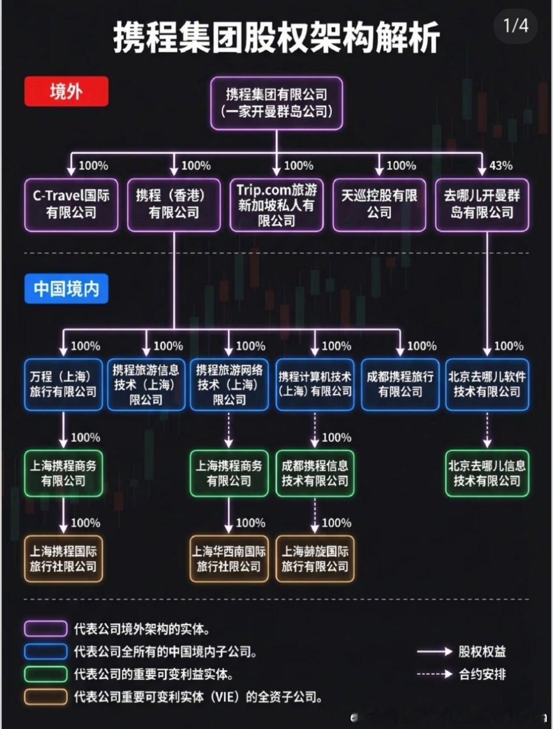 携程惊呆了!今天才知道常用的去哪儿、同程、艺龙、途家、丽呈,其实都是携程的。。。2014-2015年,携程通过收购、入股,拿下艺龙37.6%股权、去哪儿45%投票权,还战略投资同程,又绑定途家、孵化丽呈酒店品牌。数据显示,2024年底“携程系”在国内OTA市场占了近70%份额,远超美团、飞猪等对手;2024年7月出境游服务人次市占率更是高达48.3%。2025年前三季度,携程净赚290亿元,每天净赚超1亿元。不过,高市场集中度也引来监管关注。2026年初,相关部门就携程涉嫌垄断问题立案调查,后续发展值得留意。