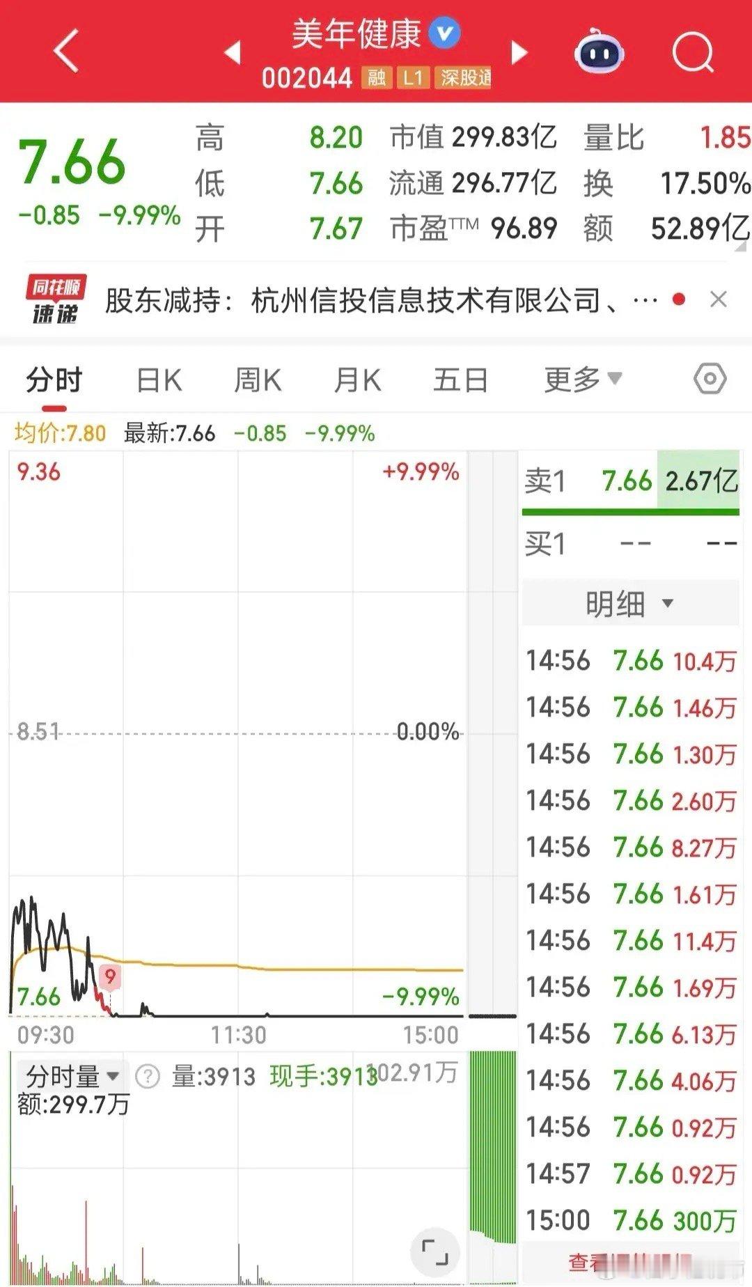 章盟主爆买2.5个亿:今天热门股还是一堆核按钮。美年健康虽然跌停,但章盟主逆势抄底2.5个亿。这么多大游资都拉不起来,看来情绪还是太差了。