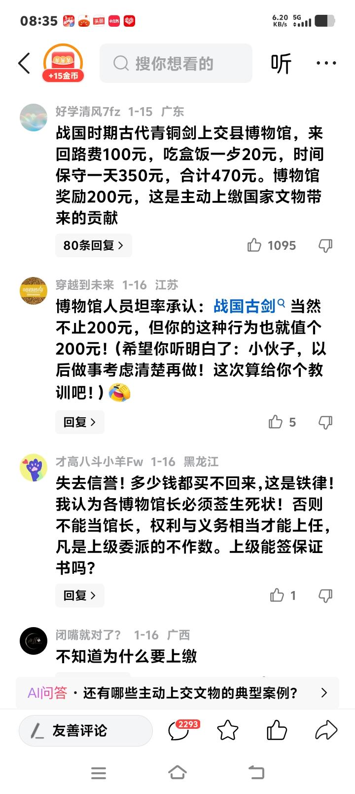 湖北浠水工地惊现千年战国青铜剑!上交国家获200元奖励引全网激辩:是鼓励还是寒心?背后真相令人深思! 当冰冷的挖掘机铲斗划破浠水县工地的泥土,一段沉睡两千多年的战国记忆被骤然惊醒。毕先生弯腰拾起的,不仅是一把断裂却难掩锋芒的青铜古剑,更是一道映照当代人心与制度的多棱镜。上交,获两百元表彰,消息如石入静湖,涟漪瞬间席卷全网,赞誉与质疑齐飞。这柄古剑,究竟刺中了我们时代的哪根神经? 文物无言,历史有声。那抹斑驳的铜绿,是战国烽烟与楚地匠心的凝结。它或许曾佩于士大夫之腰,见证过合纵连横;或许曾深埋于墓葬,守护着某个不朽的魂灵。其价值,早已超越金属本身,成为民族血脉中一段可触摸的密码。博物馆的初步判断,点燃了公众对一段辉煌历史的好奇与想象。 然而,两百元奖励,像一颗投入沸水的冰,瞬间冷却了部分人的热情。有人为毕先生点赞,称其义举彰显公民担当;更多人则发出不平之鸣:“一顿饭钱买断千年历史?”“这究竟是奖励,还是对善良的敷衍?”情绪的背后,是公众对文物价值被充分尊重的深切期待,以及对文物保护机制透明度的天然追问。 博物馆的回应,试图在法规与情理间寻找平衡。依据法律,地下文物属国家所有,上交是义务,奖励是鼓励。两百元,象征意义大于经济补偿,这是现行框架下的常态。但公众的质疑恰恰在于:当象征意义与民众感知的价值产生巨大落差时,这种鼓励机制是否还能有效滋养那份珍贵的自觉? 我们不妨将目光投向人心深处。毕先生上交的瞬间,驱动他的是对法律的敬畏,对文化的尊重,亦或是一份朴素的爱国情怀?这份初心,纯净而珍贵。而舆论的沸腾,实则反映了社会集体意识中对“公平回报”的渴望,对“义利之辨”的现代思考。我们既希望守护毕先生们的赤诚,也期盼制度能给予更温暖的呼应。 这把青铜剑,照见的更是文物保护的时代课题。它警醒我们,在城乡建设的轰鸣中,有多少未被勘探的历史可能悄然消逝?它亦考验着体系:如何建立更科学、透明、激励相容的发现与奖励机制?如何让博物馆与公众之间,建立更坚实的信任桥梁?这不仅是湖北一地的考题,更是全国性的思考。 值得欣慰的是,讨论本身已是进步。万千网友的每一条评论,无论愤慨还是理性建议,都是公民参与文化遗产保护的生动体现。它推动着事态向更深处发展:博物馆承诺后续鉴定与可能追加奖励,舆论持续监督关注。这柄古剑,已然成为一堂全民共享的公共伦理与文物普法课。 历史的馈赠,偶然落于平凡人之手。如何安放这份厚重,需要发现者的良知,需要制度的智慧,也需要我们每一个围观者的理性与建设性。这把剑最终的价值,或许不仅在于其战国身份的确立,更在于它能否撬动共识,让下一次“拾剑人”的选择,更坚定,更光荣,也更无后顾之忧。 (来源:根据新京报、闪电新闻、等媒体报道及网络公开热议综合梳理) 文物保护 公民责任