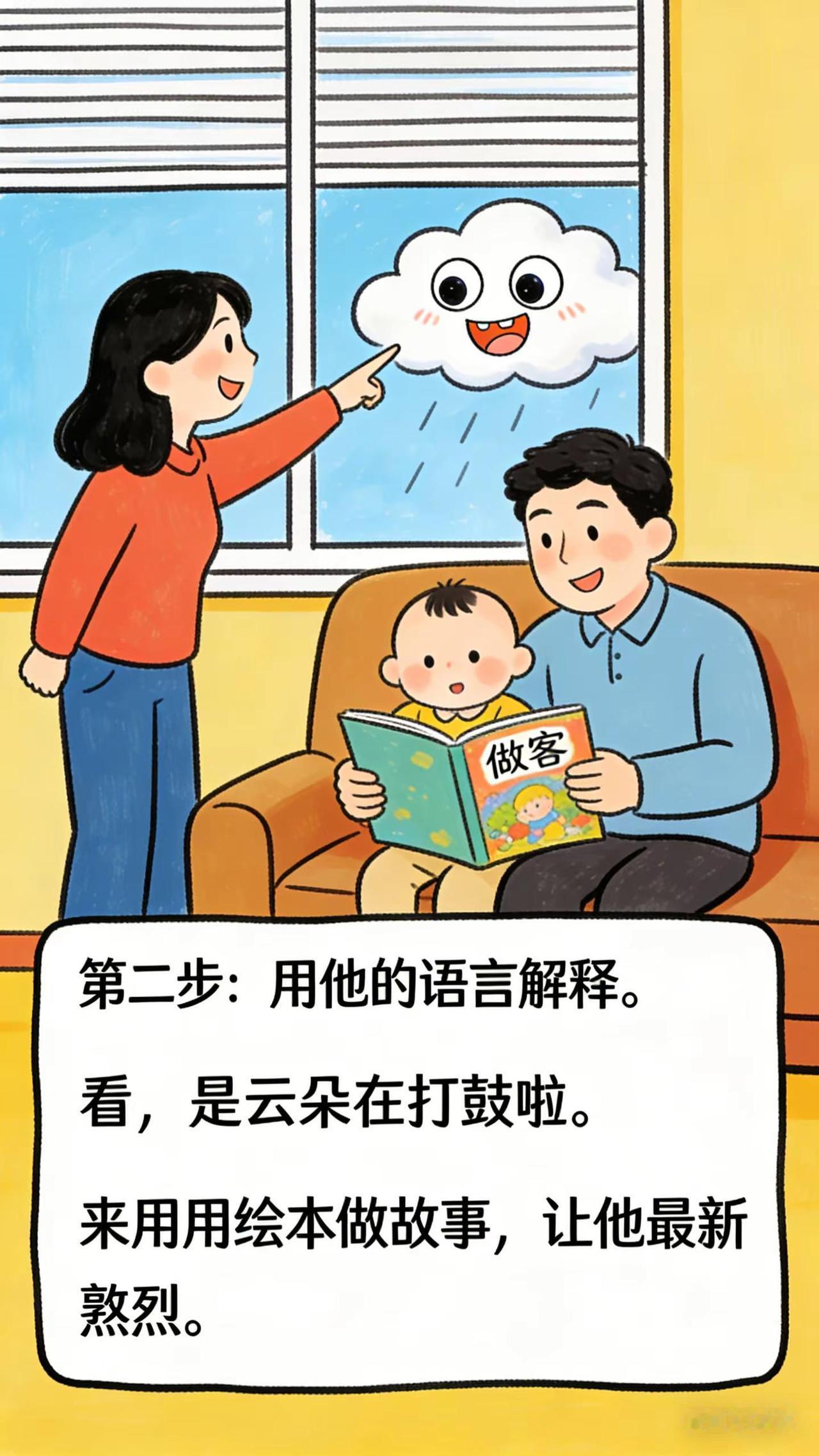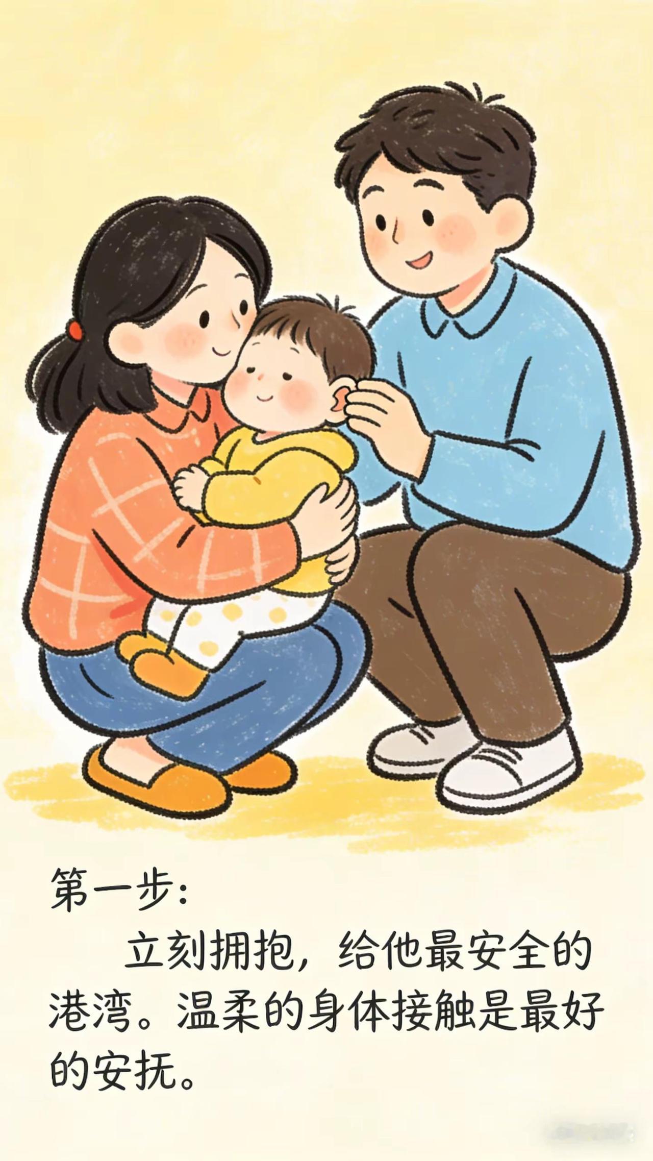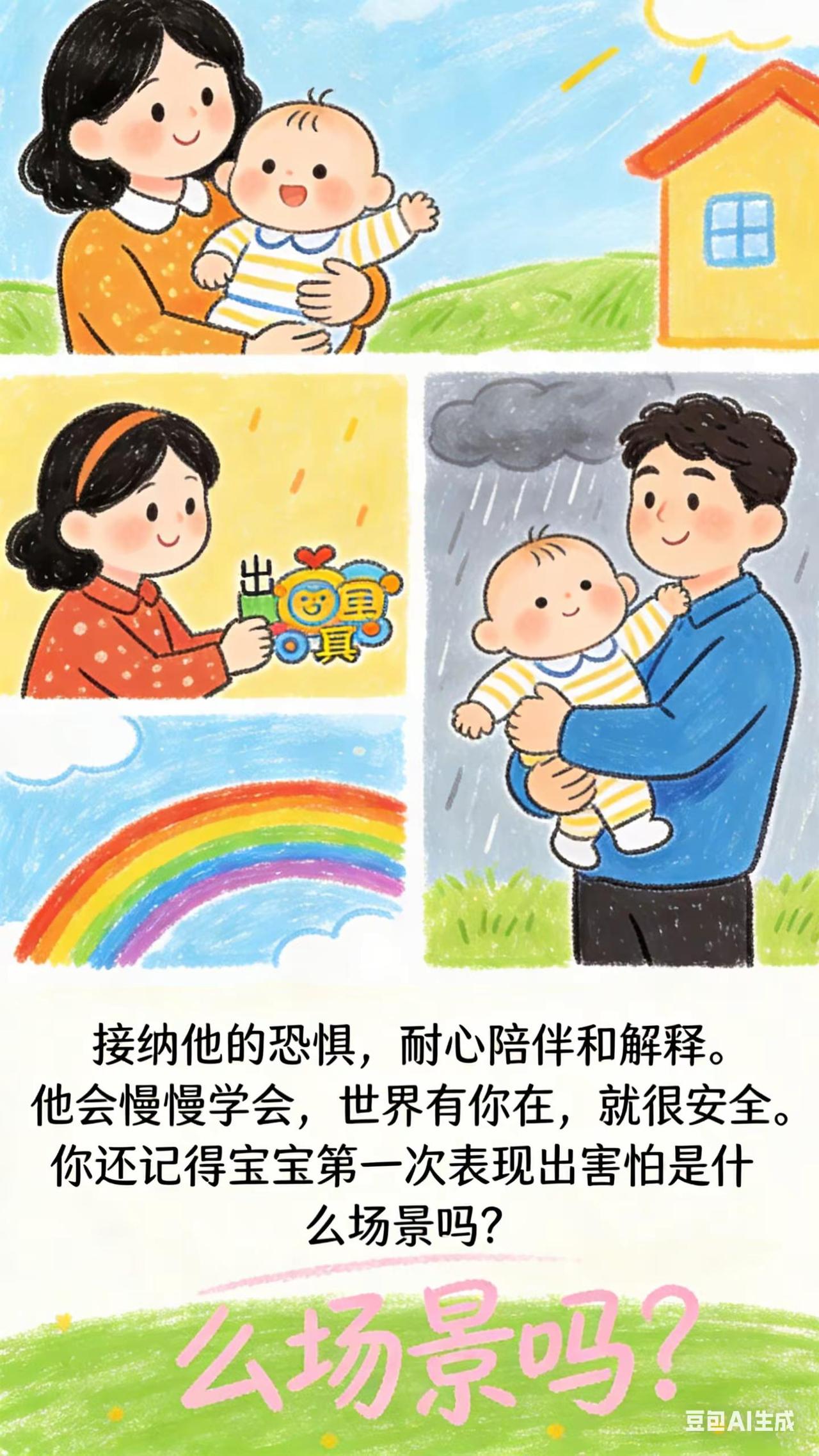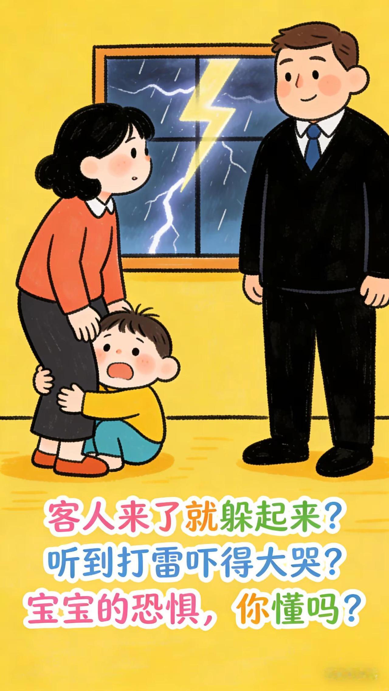 婴幼儿情绪引导:2.认识宝宝的恐惧情绪。家里突然来客人,或遇到打雷、鞭炮声,宝宝表现出害怕、躲起来,家长不知如何帮助宝宝克服恐惧。科学原理:0 - 3 岁宝宝认知有限,对陌生事物、突然的声响等容易产生恐惧情绪。这是他们自我保护机制的一部分,但如果不恰当引导,可能影响其心理发展。解决方法:当宝宝害怕时,立刻抱抱宝宝,给予身体接触安抚。用简单语言解释让宝宝害怕的事物,如 “打雷是云朵在吵架,一会就好啦”。平时可以通过绘本、故事等方式提前让宝宝熟悉可能害怕的场景。常见误区:误区一,嘲笑宝宝胆小,会打击宝宝自尊心。误区二,强行把宝宝暴露在恐惧源下,可能加重恐惧。你还记得宝宝第一次表现出害怕是什么场景吗?育儿经验分享 新手爸妈必看 宝宝情绪管理 宝宝成长记