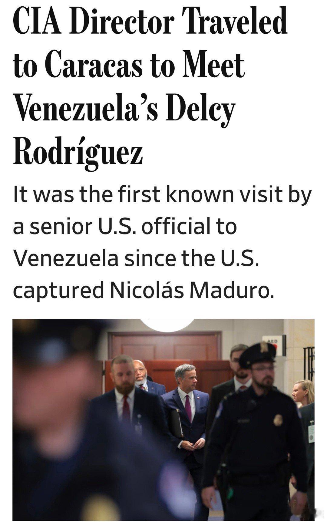 美国中情局局长,今天在委内瑞拉首都,见了委内瑞拉代总统,讨论下一步反对派领导人,转赠和平奖,没有换到支持她当权的背书,只带走一个装着免费MAGA纪念品的白宫礼品袋(图四)