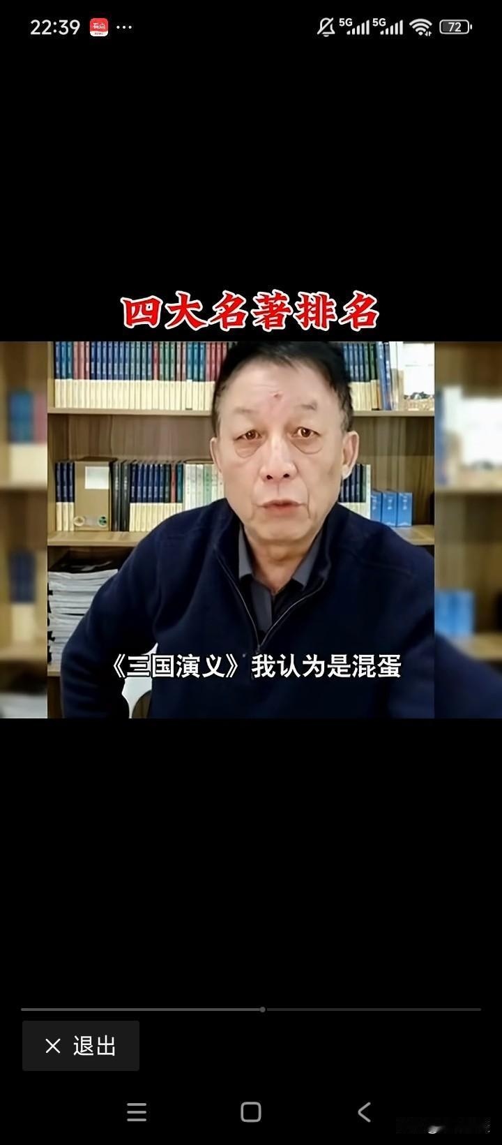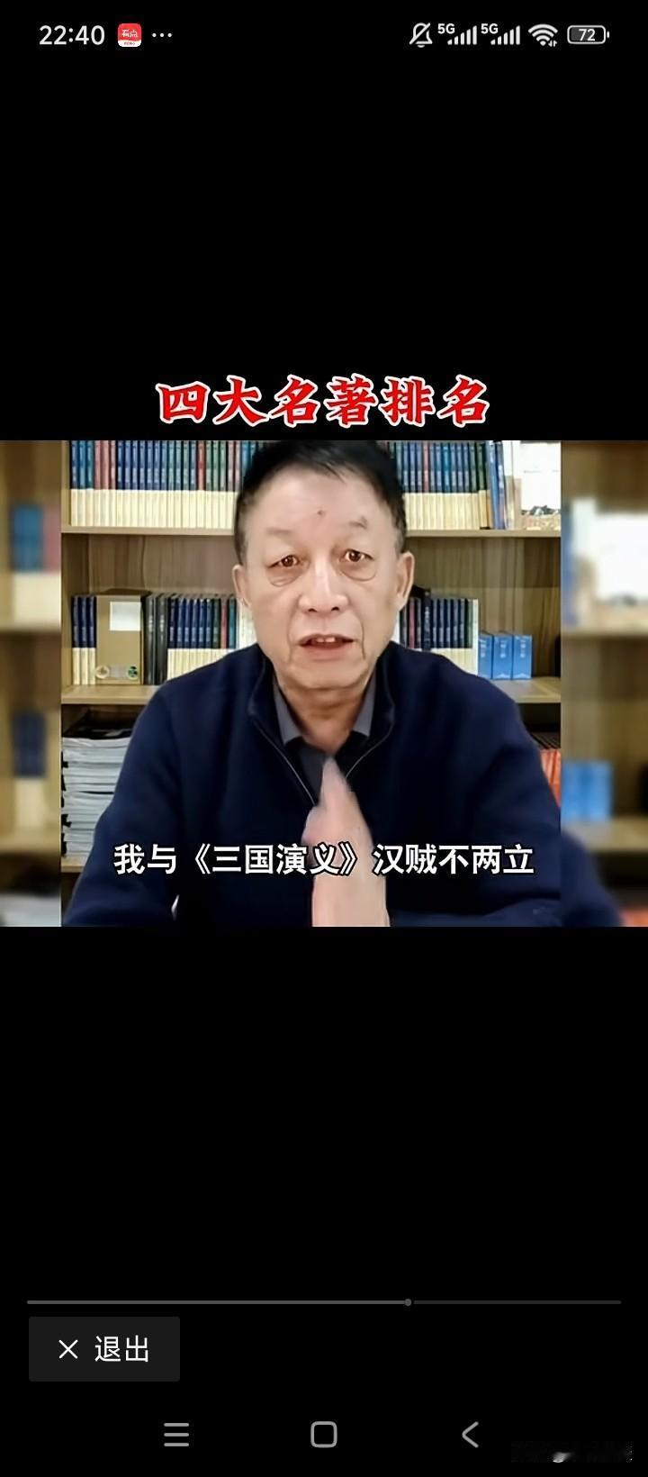 这是易中天先生的观点:《红楼梦》排第一,《西游记》排第二,《水浒传》排第三,《三国演义》排最末。这也是迄今为止关于中国四大古典名著最权威的排名顺序,不仅如此,易中天在节目中毫不客气地指出,《三国演义》最混蛋,并表示他与《三国演义》的关系是“汉贼不两立”。原因是什么呢?易老师说,他是陈寿《三国志》的忠实读者,而对罗贯中《三国演义》的胡编乱造深为厌烦,这当然是很有说服力的。毕竟,在罗贯中的笔下,张冠李戴,移花接木的故事情节太多了,甚至还不乏一些子虚乌有的桥段,比如张飞鞭笞督邮,关羽单刀赴会,诸葛亮借东风、三气周瑜、巧施空城计,庞统的连环计,曹操“宁负天下人”,等等。不过,作为一部流传较广的小说,故事情节应该是可以虚构的,罗贯中这么写似乎也无可厚非,并没什么大错。我们疑惑的是,易中天是凭借《百家讲坛》主讲“品三国”而火起来的,他又为什么如此不待见《三国演义》呢?大概是归结于知识分子的主见吧,致力于追求历史的真实性和学术的严谨性。