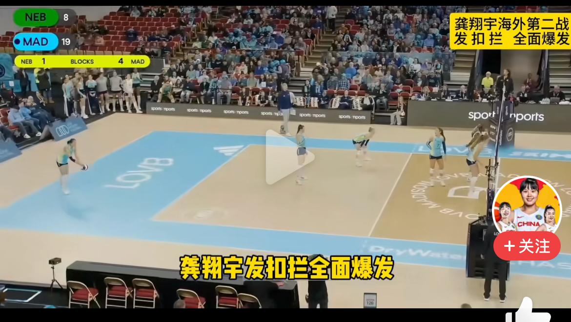 中国女排队长龚翔宇在美国女排联赛第二战,延续上一场比赛的火热,发扣拦全面爆发,助