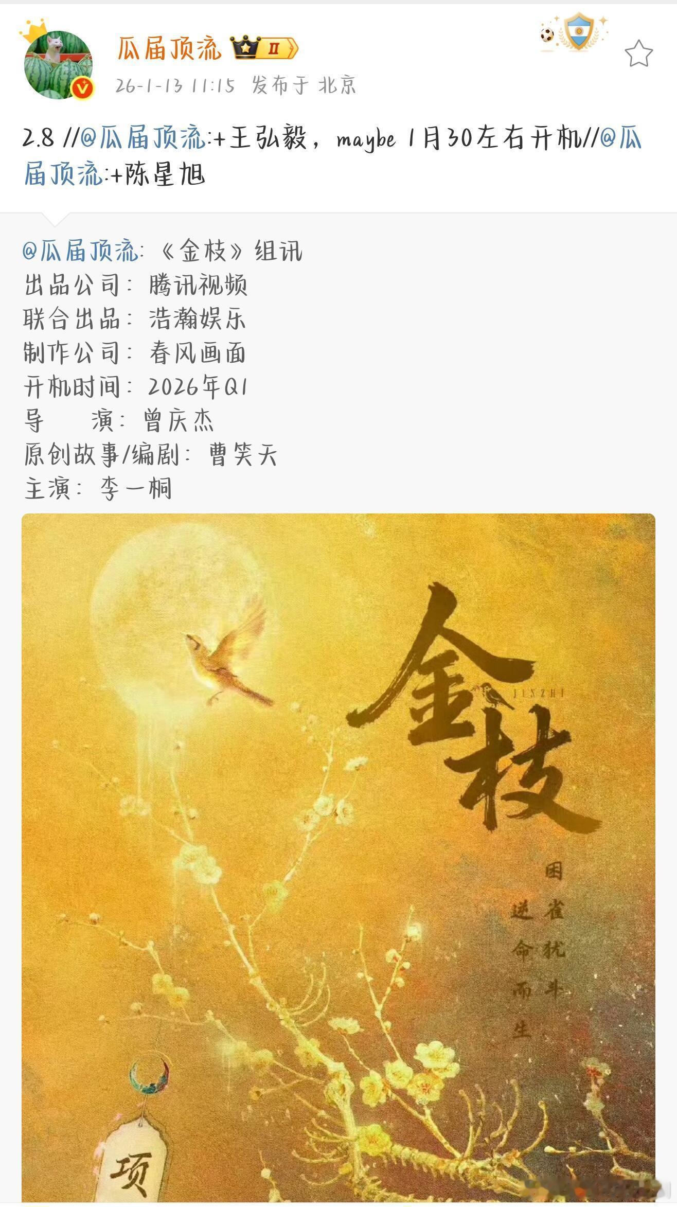 金枝 李一桐 陈星旭 王弘毅 2.8开机