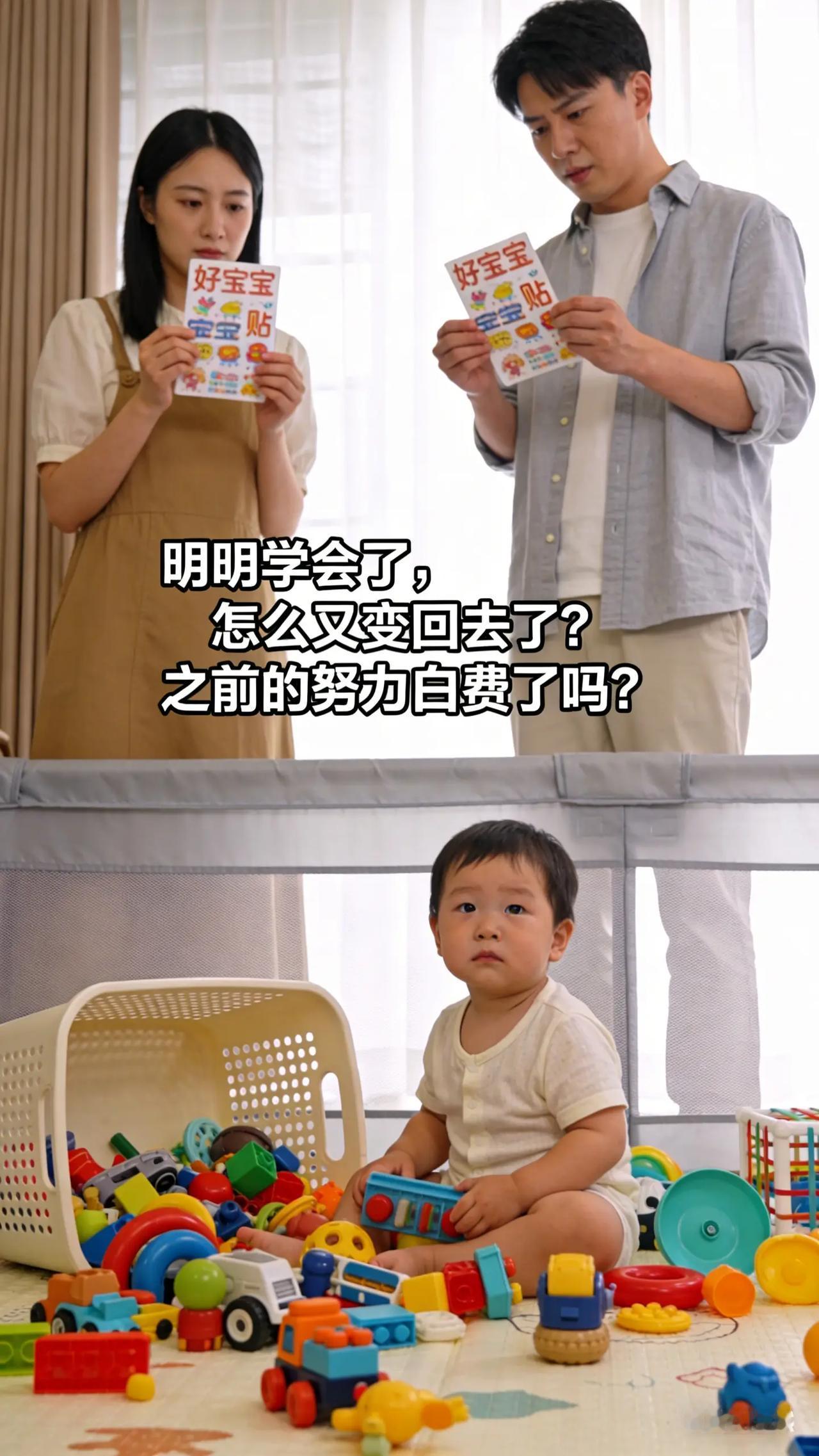 婴幼儿情绪引导:10.巩固宝宝良好情绪。宝宝之前培养的良好情绪和行为习惯,一段时间后又出现反复,家长担心之前努力白费。科学原理:幼儿的行为习惯巩固需要时间和持续强化,出现反复是正常现象。解决方法:回顾之前的引导方法,再次强化规则和习惯。当宝宝出现反复行为,不要批评指责,耐心提醒,如 “宝宝之前都会自己收拾玩具啦,今天也可以哦”。多创造机会让宝宝实践良好行为。常见误区:误区一,看到反复就灰心丧气,放弃引导。误区二,过度惩罚宝宝反复行为,打击宝宝积极性。宝宝行为习惯出现反复时,你是怎么重新引导的呢?育儿经验分享 新手爸妈必看 宝宝情绪管理 婴幼儿