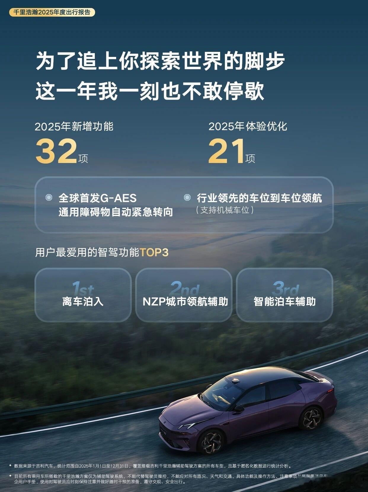 孙少军:吉利千里浩瀚也发布了自己的2025年度出行报告 吉利2025年新能源车销量起飞,出行数据也是指数级别的爆发,辅助驾驶总里程同比增长超4倍。 小编发现了吉利集团拥有其他汽车集团不具备的东西,吉利集团除了新能源发展势头很猛以外,它在传统燃油车上面发展也很猛。 比如说吉利的传统suv传统轿车做的还是不错的,有多款车型还在全国前20名。这意味着当面对外部市场变化的时候,吉利有更多的牌可以拿得出来。 针对不同市场推出不同的产品,有的市场偏爱油车,那么吉利就可以向这个地方多输出油车,有的地方偏向电动车,那么就可以向这个市场输送电动车。