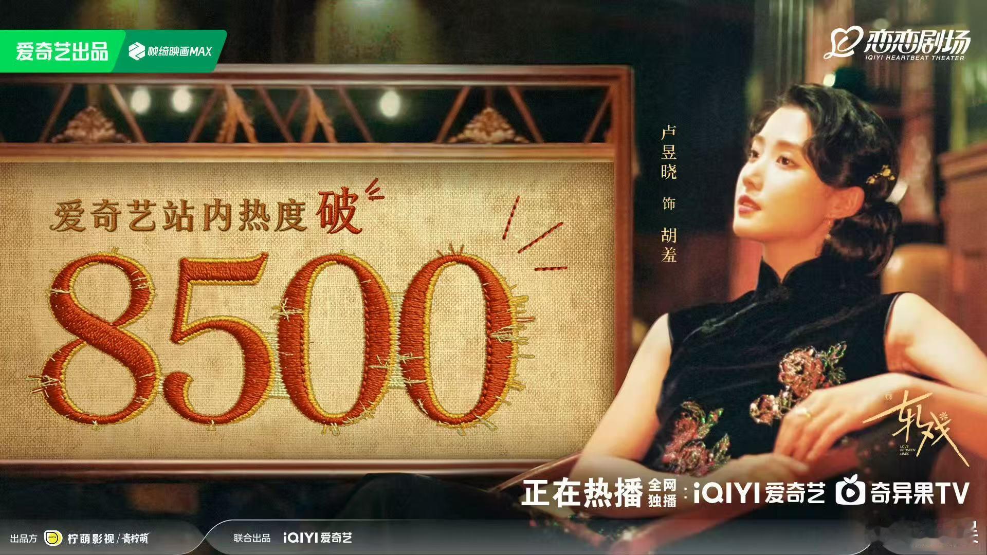 轧戏爱奇艺热度破8500恭喜陈星旭、卢昱晓主演的《轧戏》爱奇艺热度破8500!🎉双时空加剧本杀的设定超新鲜,民国军阀与现代职场双线并行,看得人上头,不愧是开年热门剧~轧戏热度破8500新娱