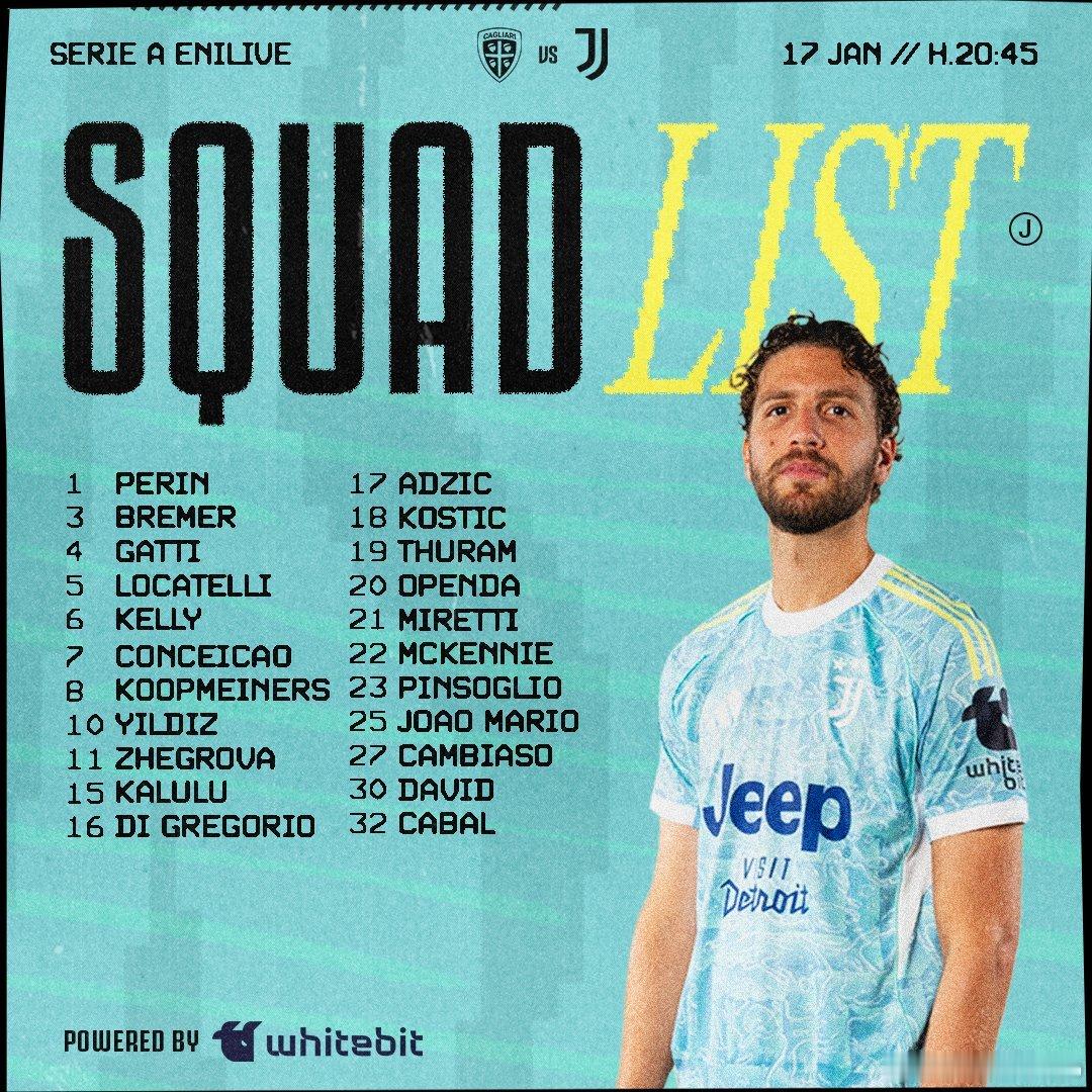 你妇公布了客战卡利亚里的比赛大名单,弗拉霍维奇、米利克和鲁加尼因伤缺阵。尤文图斯意甲联赛卡利亚里vs尤文图斯