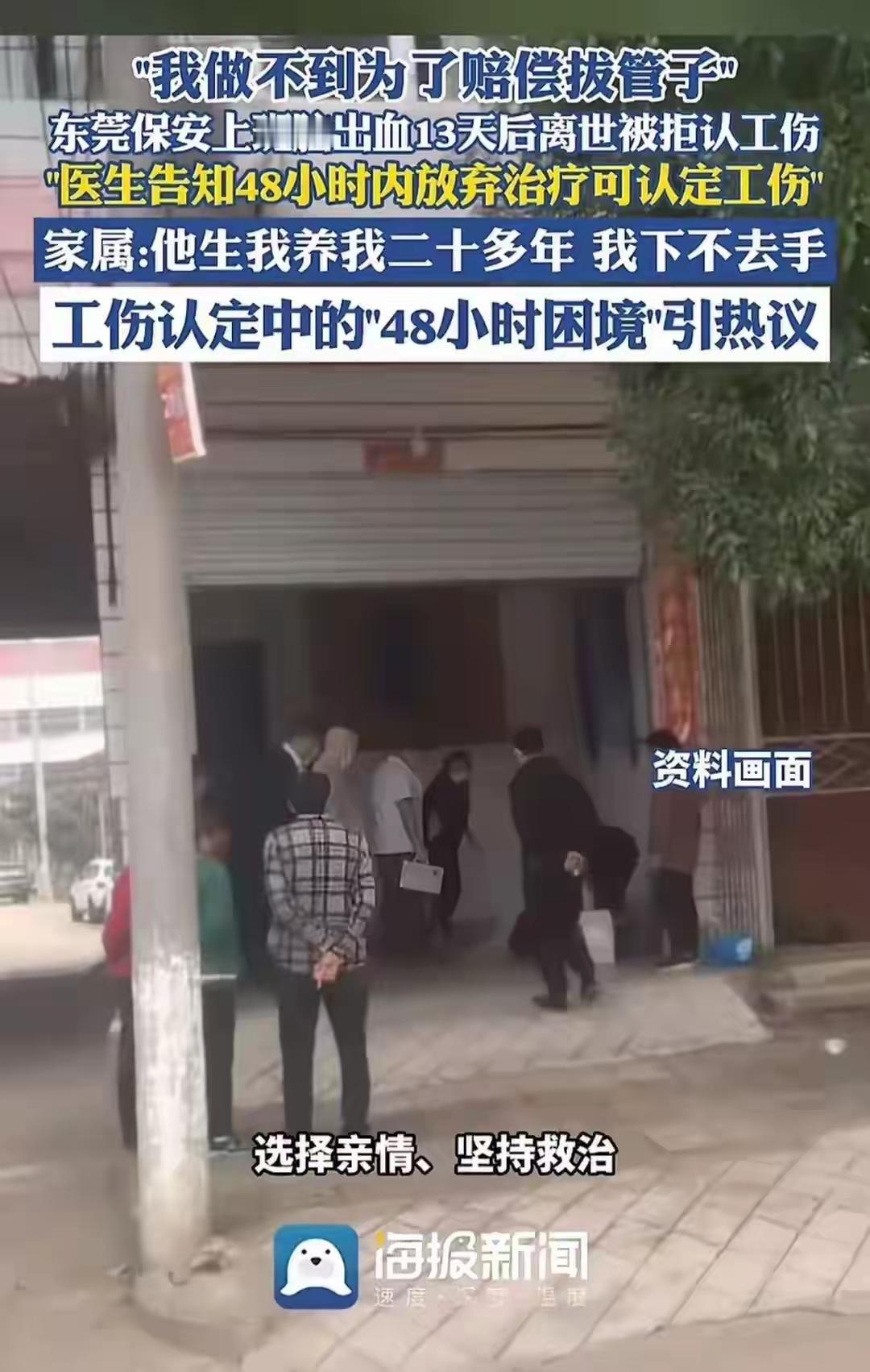 东莞保安岗亭猝然倒下,儿子含泪拒拔管13天守护至亲,换来的竟是一纸冰冷拒赔书:法律48小时生死线,正在逼善良人做魔鬼抉择! 那是一个寻常的早晨,东莞某工业园保安岗亭,五十一岁的蒋文武像往常一样执勤。谁曾想,下一刻他轰然倒地,突发脑出血。送医后,医生看着CT片摇头,瞳孔散大,脑疝形成,生还希望渺茫。然而,比病情更早抵达家属耳边的,是一道冰冷的选择题:医生低声告知儿子蒋海,“48小时内放弃治疗,可按工伤认定,获得赔偿。” “他是我爸!生我养我二十多年,你让我为了钱去拔管子?”蒋海瞬间红了眼眶。这道题,对一个儿子来说,没有选项。他选择了紧紧抓住那微乎其微的希望,日夜守在ICU外。呼吸机的嘶嘶声,成了他祈祷的伴奏。十三天,足够让希望燃尽,也让赔偿的希望彻底落空。父亲最终离世,而当地人社局的一纸文书紧随而至:不予认定工伤。理由精准而残酷——死亡时间超过发病后48小时。 全网的热议瞬间被点燃。这哪里是保险条例?分明是一道凌迟亲情的生死状。它掐着表,计算着心跳停止的最后一秒,却对医学上早已判定的“脑死亡”视而不见。法律的本意是保障,此刻却成了最锋利的刀,架在每一个重情重义的家属脖子上。你要亲情,就可能人财两空;你要赔偿,就必须在至亲尚有体温时,亲手签下放弃书。 我们不禁要问,当医学进步到可以用机器维持生命体征时,为何法律的认定标准还停留在心跳停止的原始阶段?脑疝、瞳孔散大,在医学上已是不可逆的脑死亡信号。可为了符合那“48小时”的规定,家属只能眼睁睁看着亲人被仪器“延续”生命,每一分钟都充满煎熬,每一秒都在消耗本就微薄的家底,最终却因“超时”而被制度无情抛弃。 这起案件像一面镜子,照出了制度与人性之间那道深深的裂痕。工伤保险的初衷,是劳动者在遭遇不幸时的安全网,而不是设置一个倒计时,逼迫家属在床前进行残酷的利益算计。当抢救的每一分努力,都可能成为索赔的障碍时,制度的温度何在?社会的善意又何在? 有人为蒋海的选择叹息,认为他不够“理性”。可真正的理性,难道就是教导人们在至亲生死关头,优先拨打计算器吗?那份源于血脉的不舍与挣扎,正是人性最柔软也最坚韧的部分。法律应当保护这份柔软,而不是将它逼入绝境。我们欣慰地看到,蒋海已提起行政诉讼,案件正在审理中。这不仅仅是一个家庭的抗争,更是对一条过时条款的叩问。 类似的悲剧并非孤例。河南、辽宁等地都曾出现过因“脑死亡”与“心跳死亡”时间差导致的认定争议,有的案例在司法介入后获得了公正的改判。这充分说明,僵化执行“48小时”条款,已无法适应复杂的现实。法律的尊严,在于其公正与良善,当它与普遍的人伦情感发生剧烈冲突时,修订与完善便势在必行。 今天,倒在“48小时红线”前的是蒋文武。如果我们只是旁观、唏嘘,那么明天,这可能就是任何一位在工作中突发疾病的普通人。一个文明的社会,不该让孝心成为获得基本保障的代价,不该让人们在守护亲情时感到孤立无援。是时候重新审视这条“生死线”了,让医学标准融入法律判断,给予特殊情况应有的弹性与关怀。 愿每一次不幸,都能推动制度向更人性化的方向前进一寸。愿每一份在绝境中依然坚守的亲情,都能被善待,而不是被惩罚。因为,守护生命的尊严与守护制度的公正,从来都不应该是对立面。 工伤认定之痛 情与法的两难 制度与人性的碰撞 (来源:综合自网络相关报道及案例)