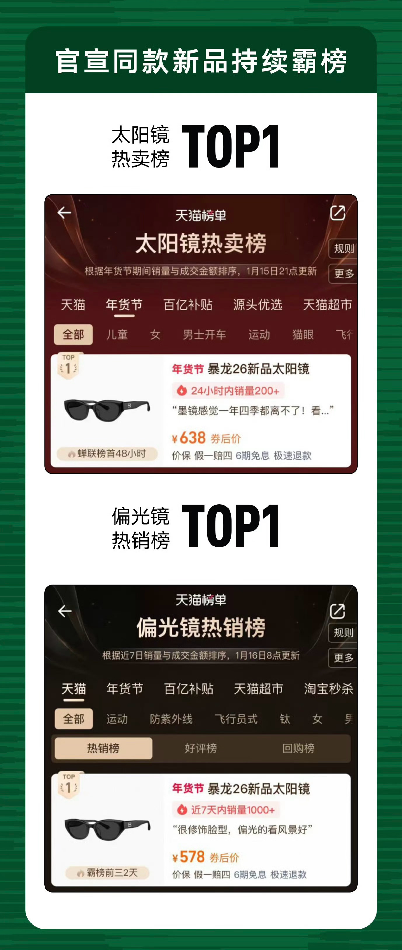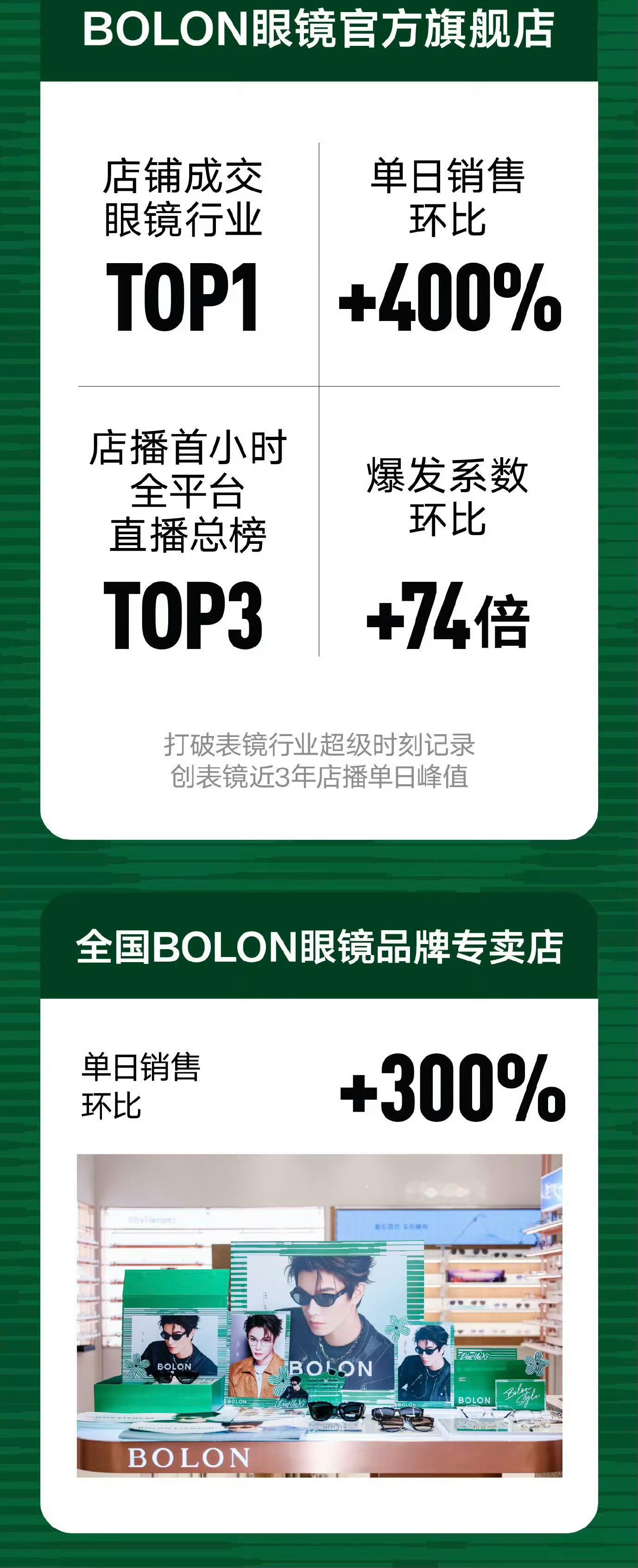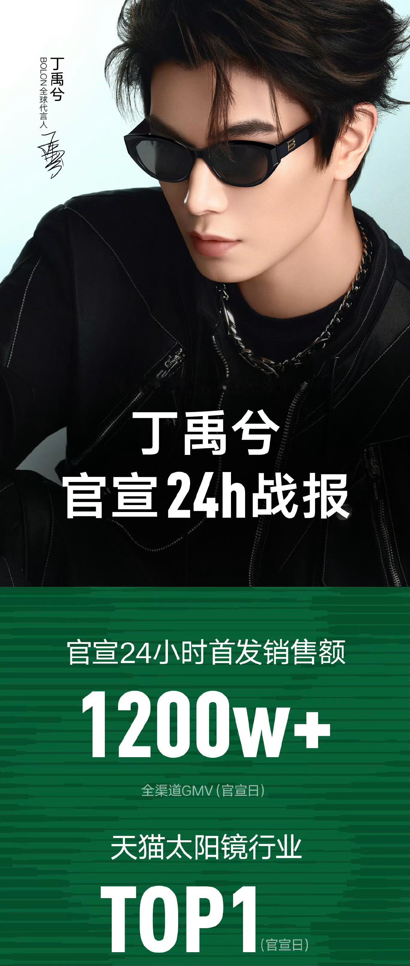 丁禹兮暴龙24h战报丁禹兮官宣成为BOLON暴龙眼镜品牌全球代言人24h内全渠道GMV突破1200W+🔥强势登顶天猫太阳镜行业TOP1,店播首小时登全平台总榜TOP3,打破行业超级时刻记录创近3年单日峰值!专卖店渠道单日销售环比增长300%+,微博星品影响力持续霸榜双TOP1,丁禹兮的商业价值好顶👍
