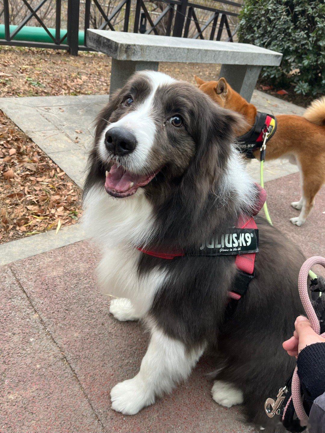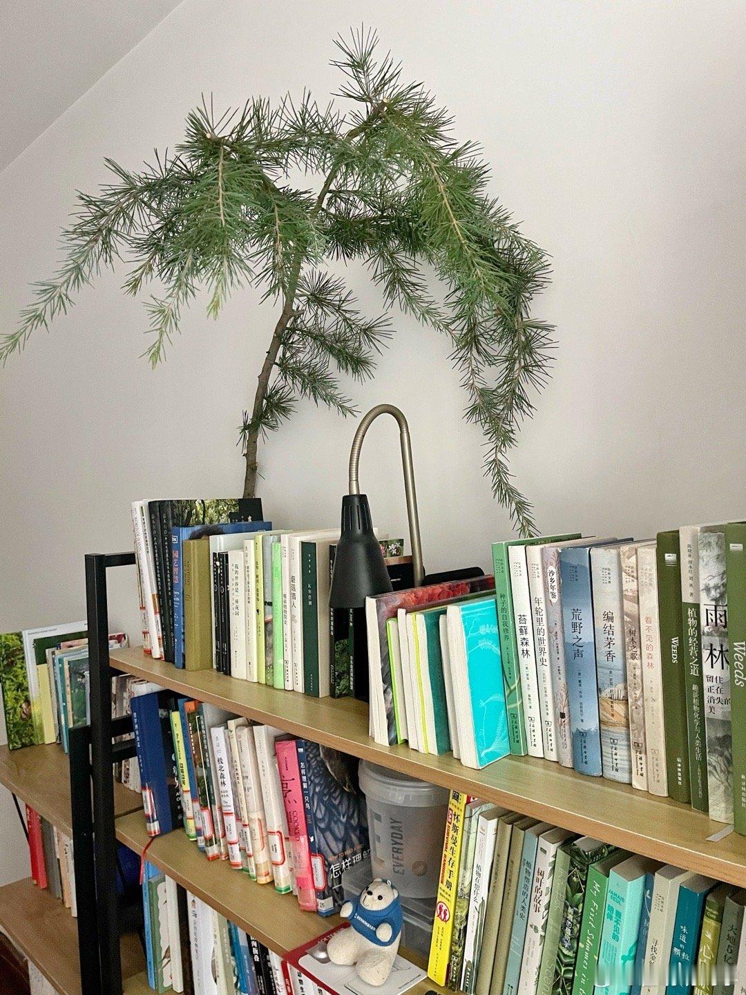 今日遛狗收获,跟一个胖胖的伯劳打了个招呼,顺便捡了根雪松树枝回家