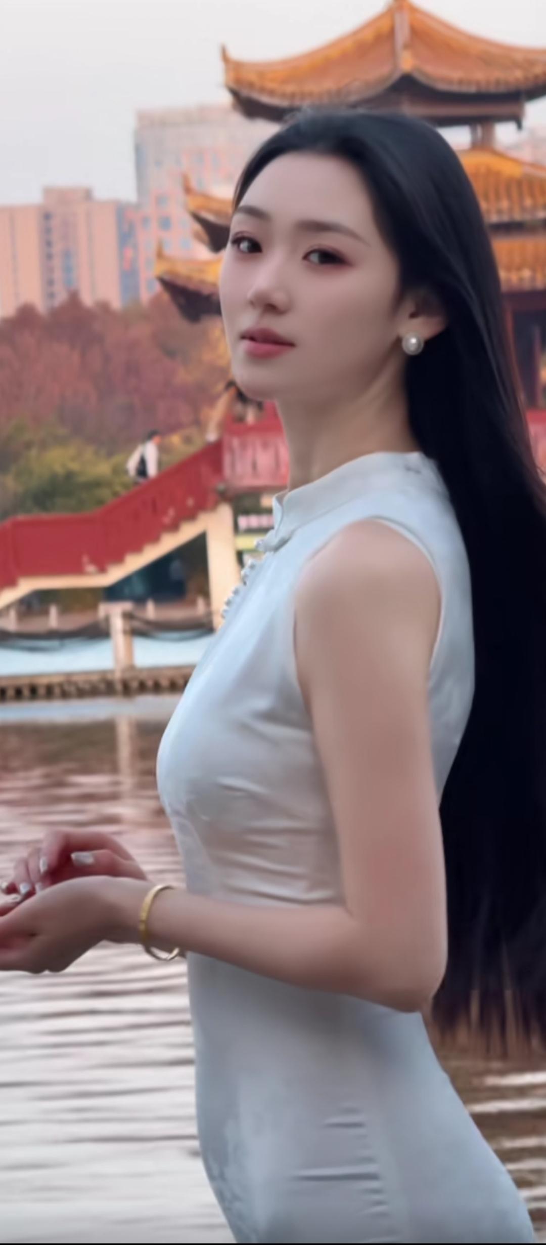 旗袍系列3:温婉女子,古风韵味,石径漫步。