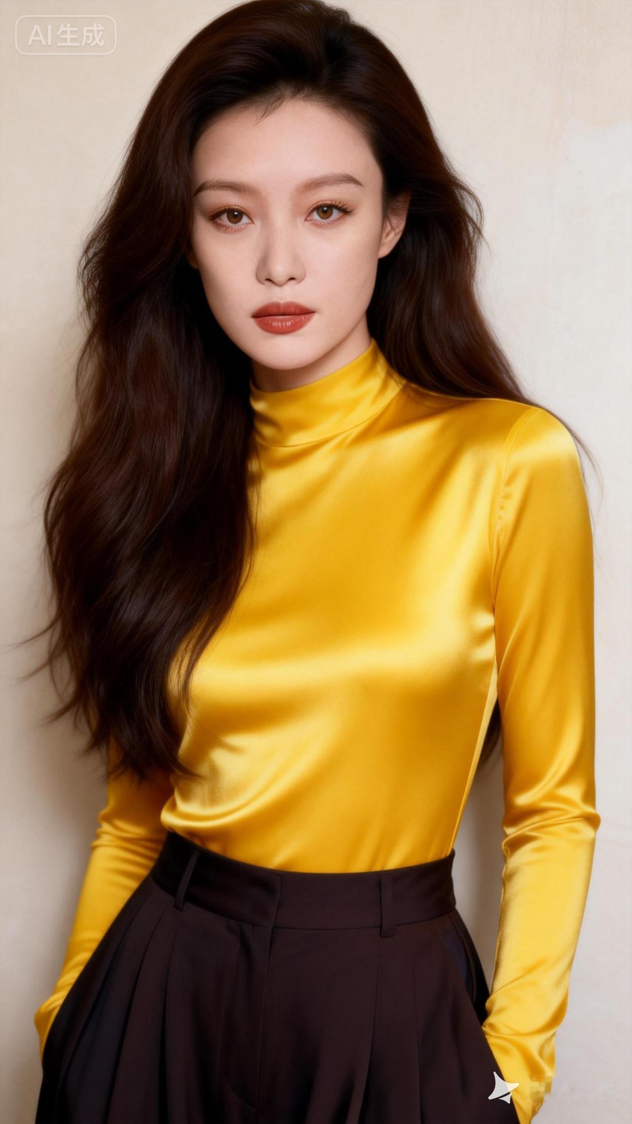 粉色上衣搭配黄色高腰裤,简约优雅,尽显女性魅力!💕