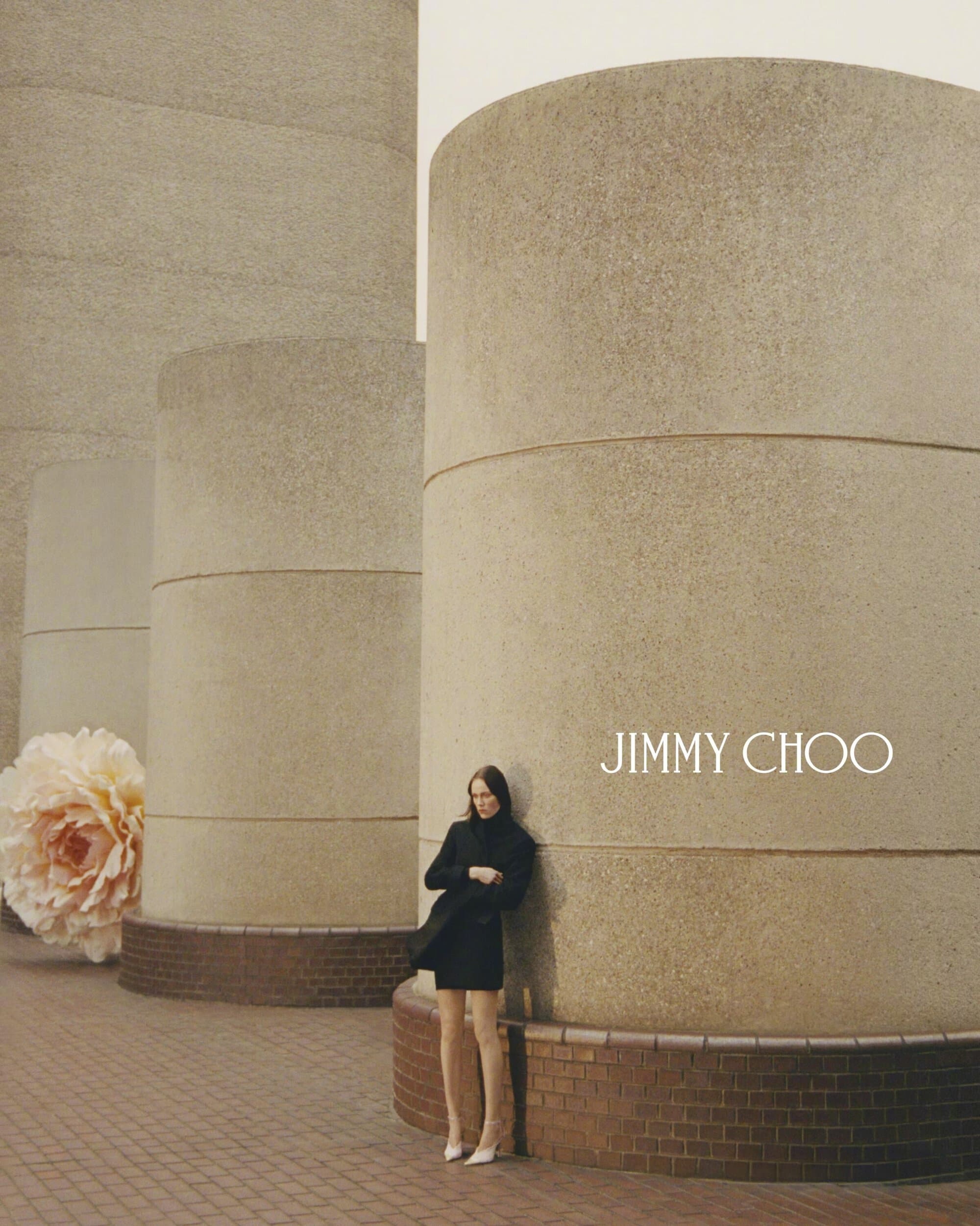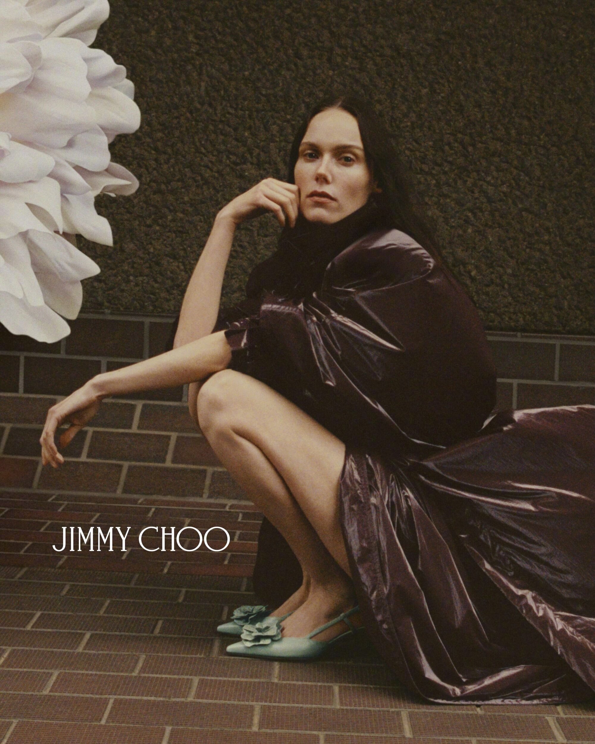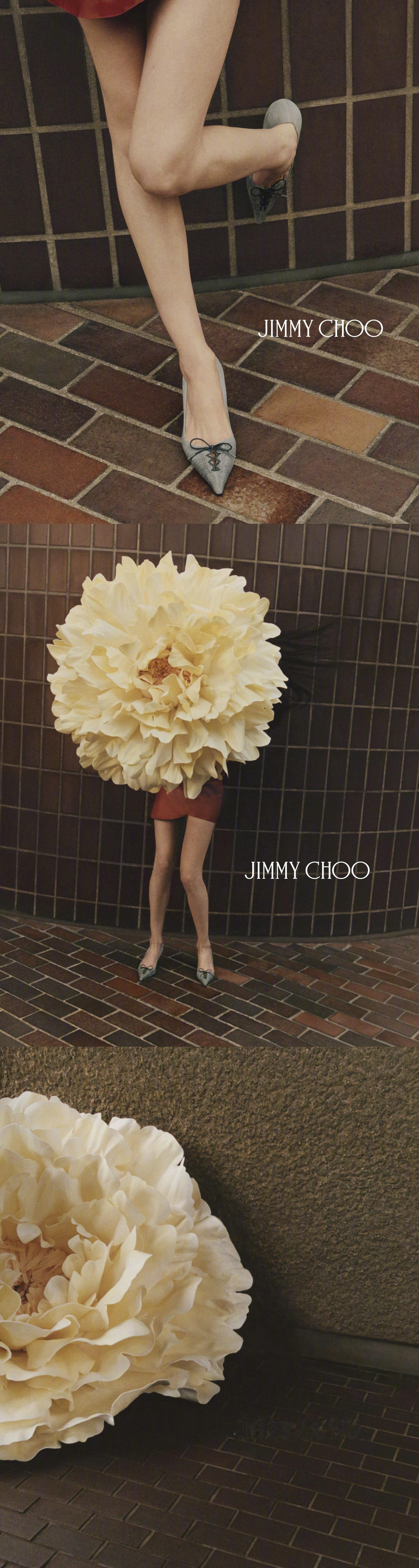 Jimmy Choo Spring 2026 campaign 风格大赏 春季女士系列广告大片“Les Fleurs” 繁花之境主题,通过巨型花卉装置与实用主义建筑,糅合新旧元素、真实与超现实意象,传递兼具柔美与力量的女性风范。模特: Kiki Willems 摄影: Quentin De Briey 时尚灵感解读穿搭风格