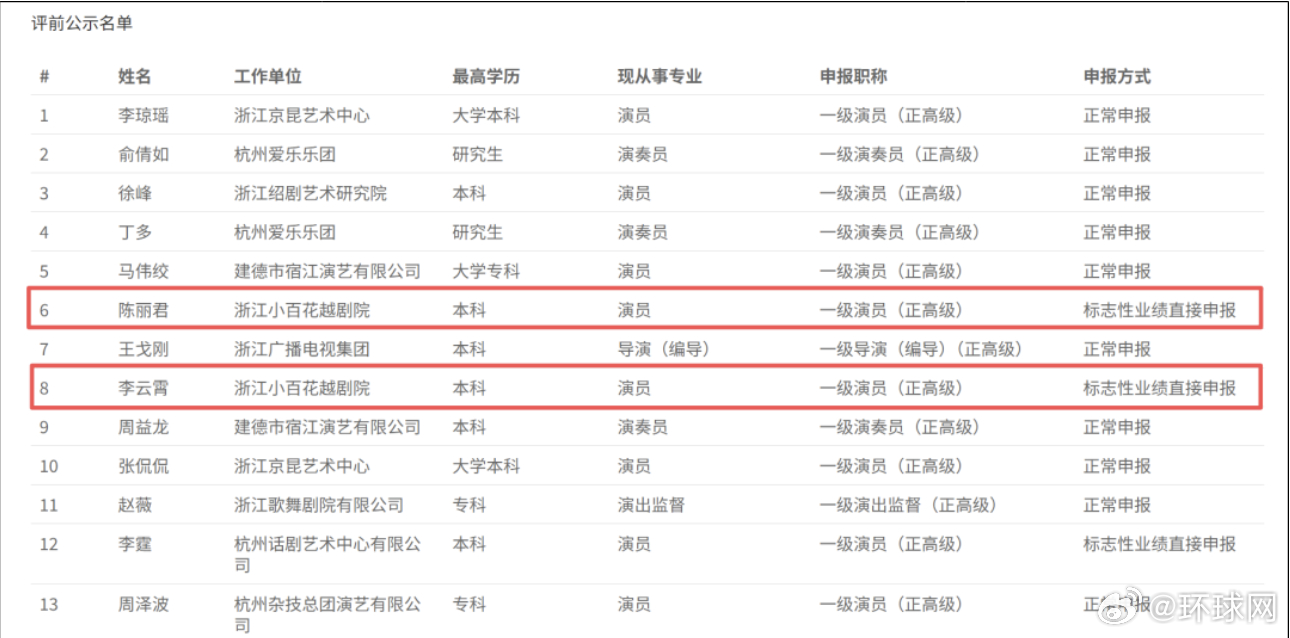 【#陈丽君李云霄获一级演员任职资格#】1月16日,浙江省人力资源和社会保障厅发布《浙江省文化广电和旅游厅 浙江省人力资源和社会保障厅关于公布陈海敏等87人具有艺术高级专业技术职务任职资格的通知》,其中,浙江小百花越剧院演员、凭借出色的艺术贡献与专业成就,获一级演员任职资格。据此前报道,浙江省人社厅网站于2025年12月1日发布《2025年度浙江省文化广电和旅游厅艺术系列高级(艺术一级)专业技术职务任职资格评审计划评前公示》,其中,浙江小百花越剧院演员陈丽君、李云霄以标志性业绩直接申报一级演员(正高级)。据介绍,陈丽君,1992年出生于“越剧之乡”浙江嵊州,2008年她进入越剧小百花班学艺,毕业后成了一名越剧演员。2023年,陈丽君因饰演《新龙门客栈》中贾廷一角爆红,以戏曲创新破圈,让传统越剧走进年轻人的视野。2025年,陈丽君凭借《我的大观园》中贾宝玉一角荣获第十八届文华表演奖。李云霄,1993年10月出生于浙江临海,浙江小百花越剧院(浙江小百花越剧团)演员,越剧吕派花旦。2023年,她凭借在新国风环境式越剧《新龙门客栈》中饰演女主角、客栈女老板金镶玉走红,2024年因主演现实题材越剧《钱塘里》获第32届上海白玉兰戏剧表演艺术奖新人主角奖。(光明日报)