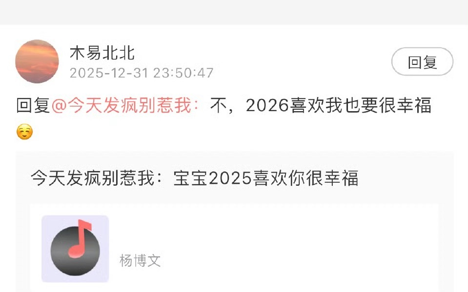 杨博文2026喜欢我也要很幸福杨博文高会回复粉丝“不,2026喜欢我也要很幸福