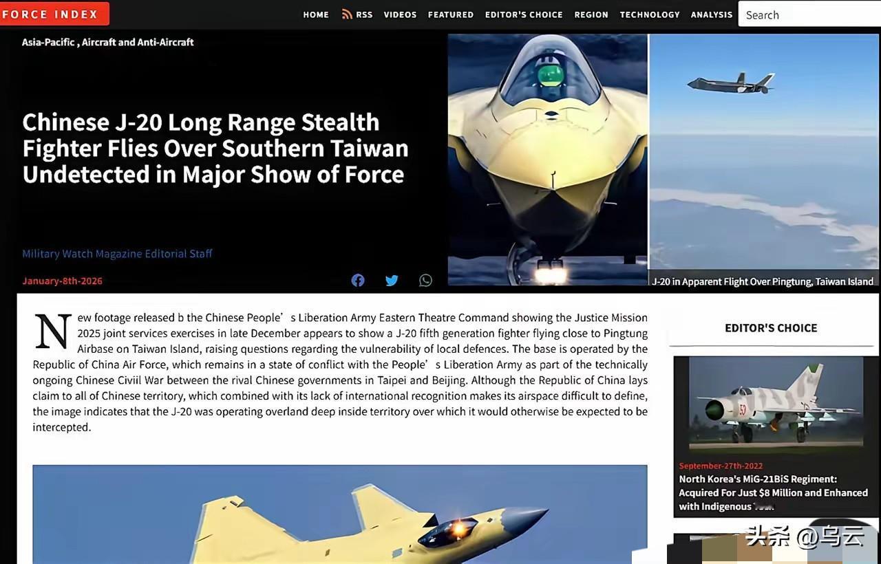 美军确认歼20进入台湾上空,NASAMS雷达捕获失败:屏幕无任何信号! 这不是科幻剧情,而是美军确认的实战化演练实况!台军屏东空军基地就在附近,部署着E-2T预警机、P-3C反潜机等核心装备,歼-20摸到基地门口却如入无人之境,台军既没升空拦截,也没发布任何预警——不是不想,是根本没发现! 号称“防空保险箱”的NASAMS系统,由美挪联合研制,搭载AN/MPQ-64F1“哨兵”相控阵雷达,最大探测距离120公里,能同时跟踪60个目标,却在歼-20面前彻底失效。美军专家拆解后直言:“歼-20的雷达反射截面仅0.05平方米,相当于一只飞鸟,NASAMS的传统探测模式根本无法捕捉,更别提拦截。” 更致命的是体系代差!歼-20并非孤军奋战:空警-500预警机在470公里外提供数据链支持,让歼-20全程静默突防;歼-16D电子战机90秒就能让台军雷达陷入“雪花屏”,11分钟无法恢复。台军退役中将帅化民坦言:“大陆已经进入AI作战时代,我们还在靠人工传递指令,这不是装备差距,是代际碾压!” 换装WS-15发动机的歼-20,作战半径大幅提升,搭配射程超200公里的霹雳-15导弹,台海平均宽度仅200多公里——意味着歼-20从大陆起飞,几分钟就能抵达台岛上空,在台军F-16V的射程外发起致命打击。而台军最先进的AIM-120导弹,射程不足160公里,还没发现目标就可能被击落。 更震撼的是“贴脸威慑”:此次歼-20低空飞行的画面中,台湾海岸线、山脉纹理清晰可见,此前“双尾蝎”无人机已拍下台北101大楼全景。这背后是解放军全域态势感知能力的全面兑现——台军的核心地标、军事基地,早已处于实时监控之下。 美军确认的这一幕,彻底击碎了“台湾之盾”的幻想。当隐身战机+电子压制+体系协同形成合力,传统防空系统如同纸糊。网友锐评:“不是NASAMS不行,是歼-20太逆天,更关键的是,这只是解放军体系作战的冰山一角!” 台军防空系统形同虚设,美军援助的装备沦为摆设,你觉得这场技术代差还能靠采购弥补吗?评论区聊聊你的看法!