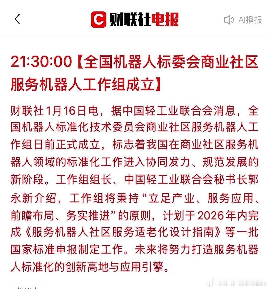 国家队下场了。一张A4纸,给整个机器人圈划了一条终点线:2026年之前,必须拿出能进社区、能帮老人的“适老化”机器人国家标准。潜台词很清楚:别再搞那些花里胡哨的了,先进考场,把这张卷子答了。为什么这么急?镜头拉到任何一个只有老人独自在家的客厅。午后的阳光照进来,一片安静,只能听到墙上挂钟滴答作响。老人想去阳台浇个花,扶着墙颤巍巍地站起来,走了两步,腿一软,差点摔倒。桌上的药瓶,伸手好几次才能够着。这就是考题。卷子,就摊在眼前。这张纸一出,等于直接终结了行业的“野蛮生长”。之前,各家公司都是凭着感觉造机器人,有的想让它送快递,有的想让它当保安,方向五花八门。而现在,一道强光打下来,直接照亮了赛道唯一的方向——去到那个独居老人的身边,在他起夜时能亮一盏灯扶一把,在他够不到药瓶时能稳稳递过去,在他想念子女时,一句话就能接通视频。一声枪响,几类选手立刻冲了出去。第一梯队,是那些本来就在造机器人的“全能选手”。它们本来就在机场、商场里跑,技术和产线都是现成的,现在只需要调转方向盘,对准“养老”这个新目的地,油门一踩就能出发。第二梯队,是那些看似“跨界”的“专科医生”。比如造智能床的,造康复器材的。它们可能不会造整个机器人,但它们手里攥着最核心的东西——关于“老”的数据。它们最懂一个老人的身体在什么状态下最舒服,最懂什么样的辅助能真正帮上忙。它们手里拿着的,是那份最关键的“用户说明书”。第三梯队,是最稳的“军火商”。造减速器的,造伺服电机的,造传感器的。它们不关心最后谁能跑到终点,因为无论谁跑,都得穿它们造的“跑鞋”,用它们产的“关节”和“眼睛”。跑道越热闹,它们的生意就越好。最后,是这场竞赛的“灵魂”。那些做人工智能、做语音交互的公司。它们负责给冰冷的钢铁躯壳,装上一个能听懂话、能聊上天的“大脑”。说白了,这不是什么高科技竞赛。这本质上是一场用冰冷的代码,去追赶我们父母老去速度的赛跑。