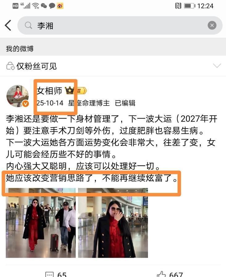 李湘的账号被禁关注,可能不是炫富那么简单。 2023年第三季度,税务部门约谈了数位艺人。 其中,奢侈品交易被列为资金异常流动的重点监测领域。 她与前夫的财富曲线,在同一时间轴上出现了诡异的背离。 一个在稳步积累,另一个的资产增速却快得不合常理。 一块顶级腕表的市场价,可能只是某个“交易”的明面标价。 而它背后,连接着一整套复杂的资金通道。 当监管的探照灯扫过,所有精心设计的“体面”都会显形。 这不是关于消费的讨论,而是关于规则与底线的重新校准。 在流量与资本的游戏中,你认为哪条红线最不该被触碰?