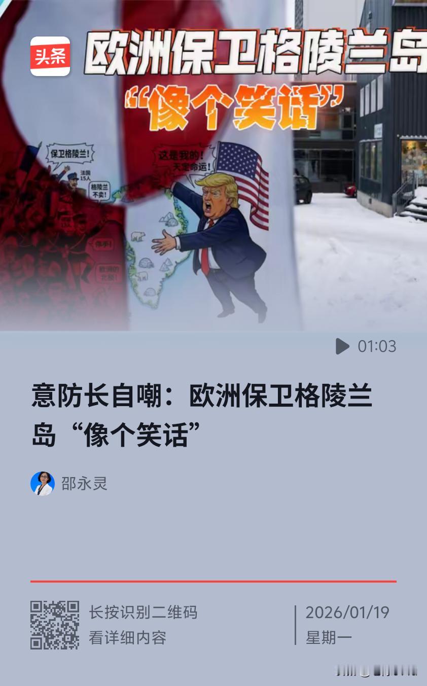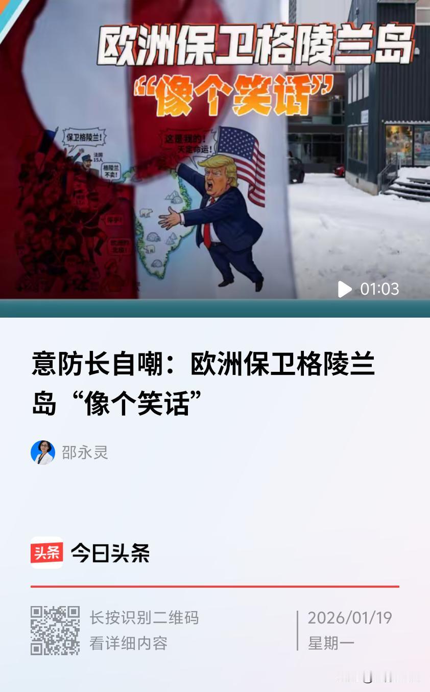 据意大利媒体1月16日报道,意大利防长克罗塞托谈及欧洲向格陵兰岛部署部队时嘲讽称,“15名法国人、15名德国人听起来就像个笑话的开头”,“派15人去格陵兰岛干什么,去旅行么”。他有此嘲讽主要因以下几点: 派兵规模过小无实质作用 代号“北极耐力”的联合军演中,法国、德国、瑞典、挪威等国拼凑的总兵力仅30多人,如此微薄兵力连基础的连级战术演练都难以完成,无法完成军事任务,更无法对美军在当地的存在构成任何实质影响。这种象征性行动除登上新闻头条,没有实际战略价值,无法改变力量对比、影响美国政策、声援丹麦。 暴露欧洲内部矛盾和分歧 丹麦作为格陵兰岛的宗主国,试图拉拢欧洲盟友共同向美国表态,部分欧洲国家响应号召,但各国行动初衷不同。有的想展现姿态,有的只愿最低限度参与,意大利更是直接拒绝。如德国国防部称派兵重点是熟悉极地环境和评估未来部署可能,和“去旅行吗”的嘲讽形成鲜明对比,暴露欧洲内部无法统一口径,说明所谓“联合行动”充满裂痕。 凸显欧洲“战略自主”的空洞 欧洲长期防务依赖美国主导的北约体系,独立军事行动能力与意愿不足,“战略自主”只停留口号层面。在格陵兰岛问题上,欧洲想彰显独立主权应对美国,但行动上却只能派出小规模部队进行形式大于内容的演习,无力摆脱对美安全和经济依赖,“战略自主”在现实面前苍白无力。