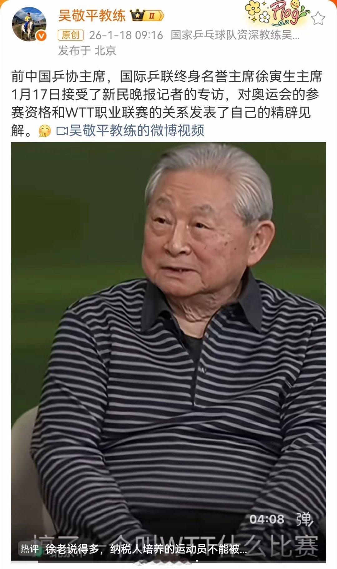 乒坛泰斗、国际乒联终身名誉主席徐寅生在接受新民晚报专访时,就运动员奥运参赛资格与WTT关系发表观点。徐寅生谈到:国家培养优秀运动员的目的,是为国家争取荣誉、鼓舞民众、推广全民运动。而奥运会等国际大赛参赛资格与WTT积分强行捆绑,侵害的是中国乒协对我们自己培养的运动员参赛资格的自主决定权。尤其是在WTT赛事很大程度上依赖中国本土办赛,依赖中国球员与经济资源的情况下,这种不合理性尤其凸显。前两天《新民晚报》曾发文《除了想念樊振东,我们还能做啥?》——中国乒协上上下下需要做的还真不少[笑哭]咱说过,洛杉矶奥运会如果没有樊振东的身影,不仅是乒乓球的损失;如果世界公认的当今最强选手需要靠所谓选拔赛取得奥运资格,长志气的肯定不是我们👀樊振东的洛奥之路,早已不是“地方之争”,此是国事,关乎国是!
