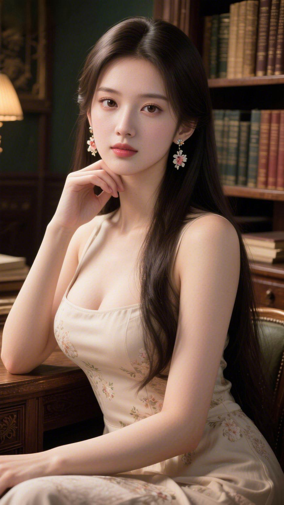雅室闲坐,花裙温柔 暖黄的台灯漫过深绿的墙面,落在浅米色裙身的碎花上,像把春日的蔷薇瓣揉进了布料里。我垂着长发,耳坠的小花在光影里轻晃,一身裙装温润舒展,没有刻意的装扮,只留一室书香与周身的温柔相融。 曾以为优雅需要繁复的装饰与隆重的场合,直到此刻才懂,舒服的状态从来不需要刻意迎合。我们总在城市的喧嚣里紧绷神经,用咖啡续着疲惫的精力,却忘了一袭柔软的裙、一间安静的书房,就能让身心都慢下来。 裙身的碎花细腻雅致,布料亲肤舒展,静坐时能感知到台灯的暖光漫过皮肤,听着书架上旧书的呼吸,像此刻的心情——松弛又安然。不必在意旁人的眼光,不必追赶日程的进度,只是在这雅室里,看光影流转,闻木质书桌的清香,享受属于自己的温柔时刻。原来真正的诗意,从来不是靠远方的旅行,而是在当下与自己的联结:不纠结未完成的事务,不焦虑未知的生活,只是在书香里,与内心好好相处。 碎花裙从来不是娇柔的代名词,它可以是藏在日常里的诗意底色,像这书房里的旧书,沉静却有力量。提醒我们在忙碌的日子里,别忘记给自己留一份舒展与偏爱。不必等特殊的契机,不必等充足的空闲,只要想,随时可以换上喜欢的裙装,在安静的角落,接住生活里的诗意。 复古穿搭 松弛感生活