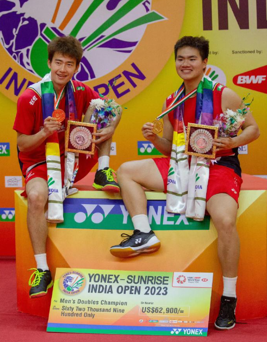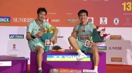 梁王组合复刻23年领奖姿势 时隔三年梁伟铿王昶又一次拿到印度公开赛冠军,完美复制三年前领奖动作,这波仪式感直接拉满 ~