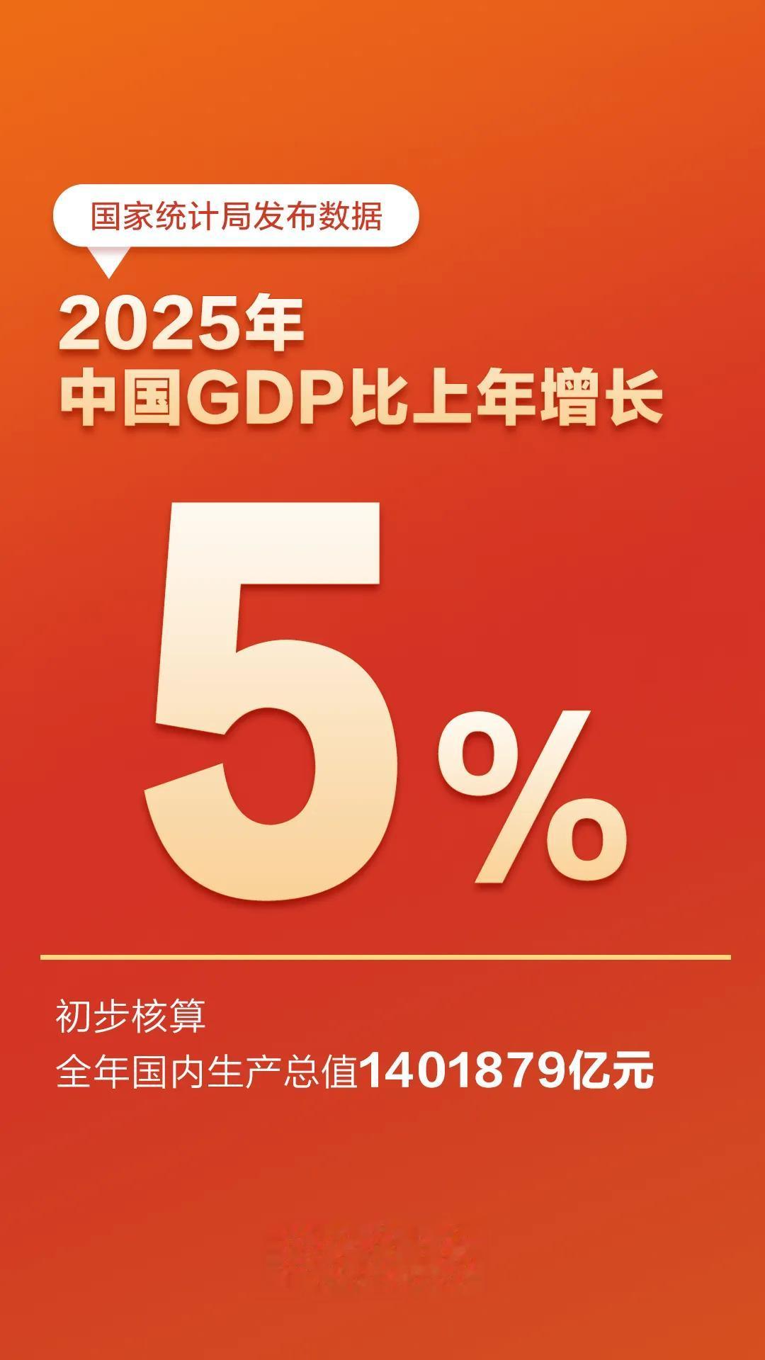 今天(19日)上午,国务院新闻办举行新闻发布会,国家统计局相关负责人介绍,2025年,国民经济运行顶压前行、向新向优,高质量发展取得新成效,经济社会发展主要目标任务圆满实现,“十四五”胜利收官。初步核算,全年国内生产总值1401879亿元,按不变价格计算,比上年增长5.0%。
