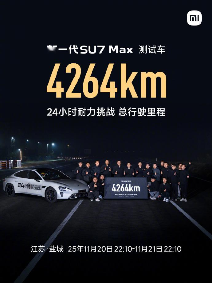 小米新SU7刷新24小时耐力挑战纪录 刚刚小米汽车刚公布了新SU7的24小时耐力赛成绩——4264 公里,这数据是真亮眼~不仅把小鹏P7之前保持的3961公里纯电耐力纪录给刷新了,还比自家YU7的3944公里成绩再上一层,自我突破这波必须点个赞!能跑出这新纪录,绝不是靠运气凑数。从YU7到新SU7,小米一直搁苛刻的场地里反复验证产品性能,这次成绩也直接说明:电机效率是真够顶,电池和电控还能扛住24小时连轴转,既没出现过热问题,续航也没明显衰减。咱通俗点说,电动车敢挑战24小时耐力赛,就相当于让短跑选手去跑马拉松,没点硬核的技术自信可真不敢这么干!新一代SU7已经开预售,价格区间22.99-30.99万元,结合这样的实测表现,大家觉得新SU7还能继续爆款吗?