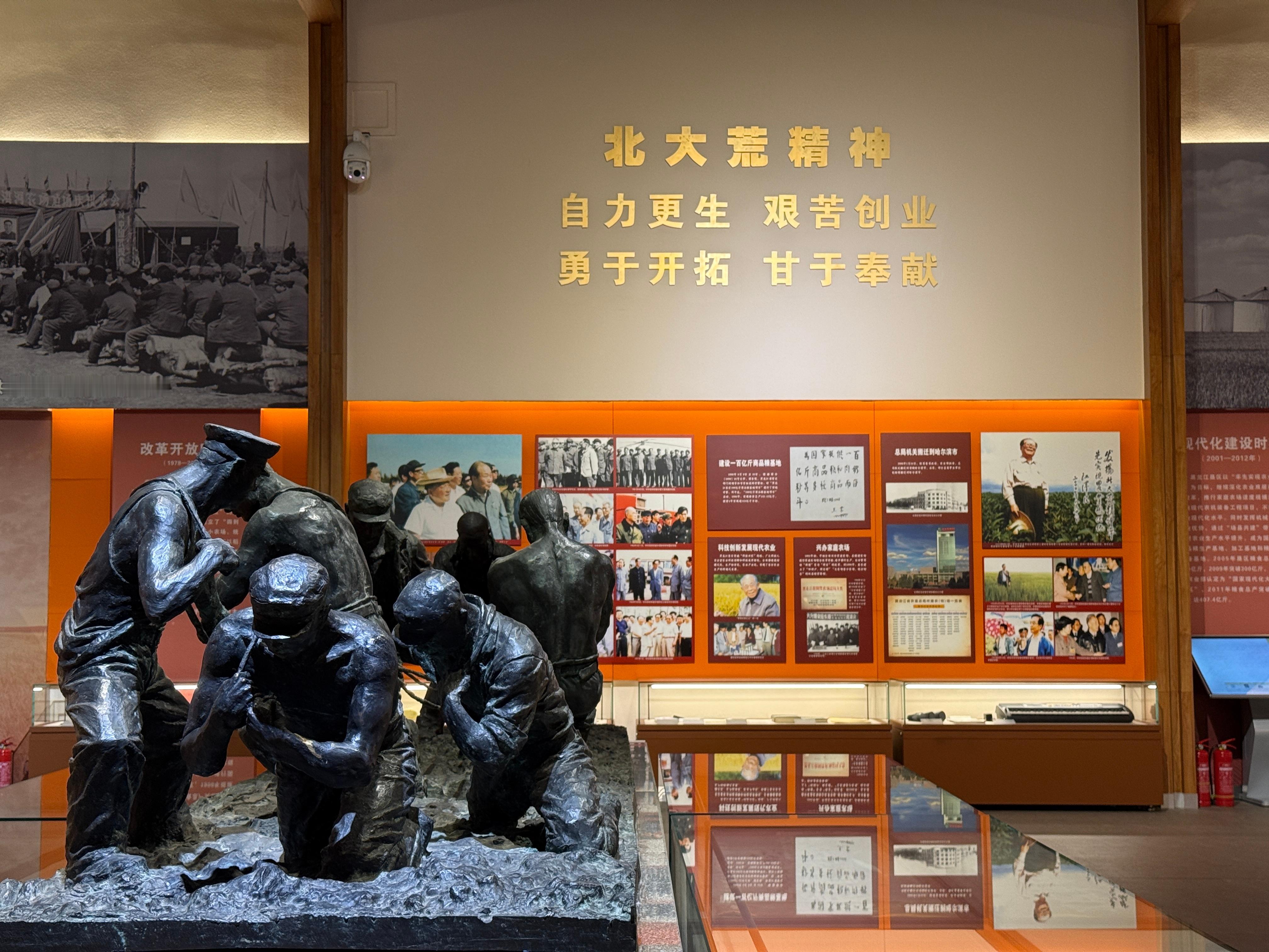 北大荒博物馆作为国内唯一以传承北大荒精神为主线、系统展示黑龙江垦区开发历程的综合博物馆,完整呈现黑土地从“北大荒”到“北大仓”的历史跨越。奋斗精神需要传承,这里见证了农业现代化迈进的历史进程,这里创造了人类农业开发史上惊天动地的伟业。 万千气象看龙江满谈满谈往昔新中国建立后,国家对“北大荒”进行了有组织的开发。从1958年起,北大荒进入了大规模开发时期。数万名解放军复员官兵、知识青年和革命干部,响应党和国家的号召,怀着保卫边疆、建设边疆的豪情壮志来到“北大荒”。他们爬冰卧雪,排干沼泽,开垦荒原,建立了许多国营农场和军垦农场,为国家生产了大量的粮食,把过去人迹罕至的“北大荒”,建设成为了美丽富饶的“北大仓”,成为我国现代化程度最高,商品率最高的商品粮生产基地。开荒播种,多产粮食,是一代代北大荒人的使命,甚至是“宿命”。从向亘古荒原要粮的艰难,到让水稻连年增产成为北大荒人执着的梦想与追求;从艰辛探索敲开寒地水稻高产的大门,到黑土地粮食产量的连连跳;从北大荒到中华大粮仓……北大荒精神催生出北大荒速度,创造出北大荒奇迹。 万千气象看龙江