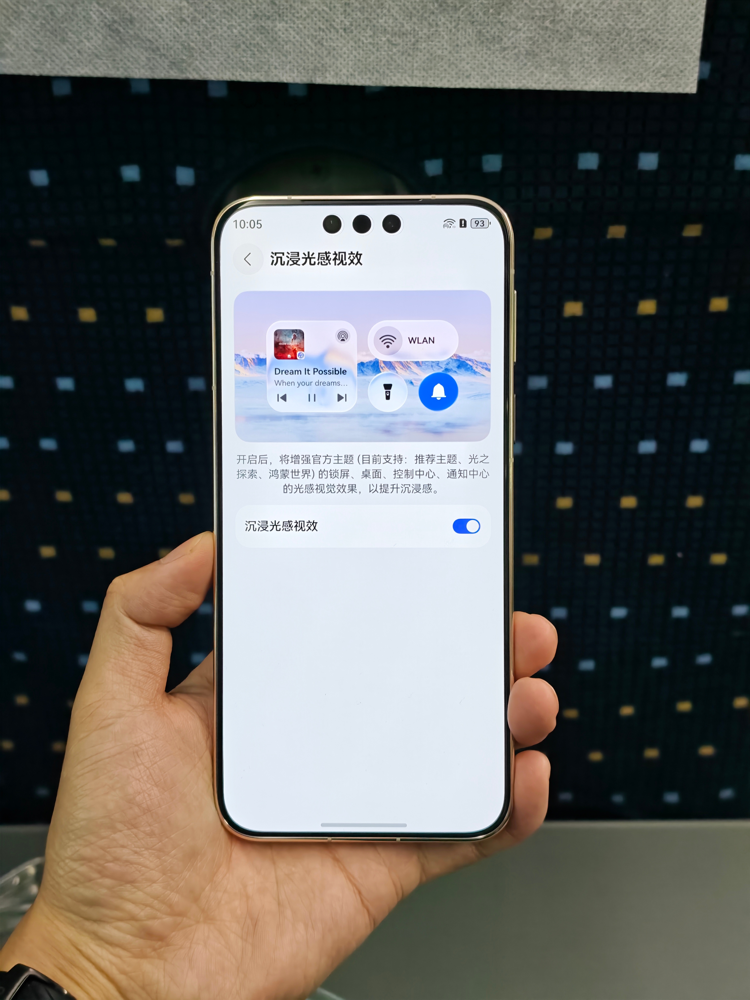 沉浸光效,华为Mate 80系列到手后必开的功能,不然真白买了,效果之细腻,动画之流畅。其他鸿蒙6的机型据说也会推送,时间问题,大家等等目前还局限于桌面以及下拉菜单,感觉还不够爽,希望能像iOS一样,把系统级软件全都适配起来,比如相机、相册,不敢想颗粒度拉齐之后能有多爽可靠的Mate