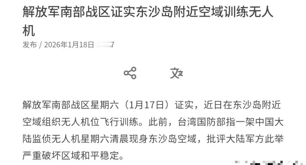 美国军舰刚经过台湾海峡,没想到解放军突然证实了一个大消息,这引起外媒格外的关注!1月18日,联合早报刊文声称,解放军南部战区已经证实,近日在东沙岛附近空域组织无人机位飞行训练。联合早报表示,此前,岛内指一架中国大陆监侦无人机星期六清晨现身东沙岛空域,批评大陆军方此举“严重破坏”区域和平稳定。 1 月 16 日到 17 日。台海海面掀起一阵不大不小的波澜。美军 “菲恩” 号导弹驱逐舰带着 “西尔斯” 号海洋测量船。大摇大摆穿航海峡,明眼人都看得出来,这趟航行根本不是什么 “自由巡航”,就是一场精心策划的挑衅戏码。 别被 “菲恩” 号驱逐舰的万吨排水量和上百个导弹发射单元唬住。它充其量就是个撑场面的 “保镖”。真正的主角,是跟在后面的 “西尔斯” 号海洋测量船,这艘船看着不起眼,肚子里全是阴招。满载着先进的测深系统和声学阵列。一路走一路搜集台海水文数据。忙着绘制海底地形图。这些数据可不是用来搞科研的。全是为美军核潜艇找潜伏窝点。为两栖登陆摸清楚门路。妥妥的实战准备。 美军这招 “明修栈道,暗度陈仓” 玩得挺溜。可惜早就被解放军看穿了。东部战区的回应干脆利落。海空兵力全程跟监警戒。这话听着简单。背后全是实打实的硬实力。解放军的驱逐舰早就在预定海域严阵以待,雷达天线转个不停。 把美舰的一举一动死死咬牢。歼击机和预警机呼啸升空。织成一张密不透风的监控网。就连看不见的电磁空间里,双方也在无声较量,解放军的电子侦察设备全程开机,把美舰的电磁信号扒得一干二净。 更狠的是。只要美舰敢越雷池一步,稍微偏离航线搞小动作,解放军舰艇立刻用无线电发出警告。战术机动步步紧逼,硬是把对方逼回了既定路线,至于 “西尔斯” 号偷偷摸摸的侦察行为,解放军也没惯着,大概率直接动用电子战力量干扰它的探测设备,让它忙活两天,最后捞不着半点有用的情报。 这边台海的较量刚落下帷幕。那边南部战区又放出一个重磅消息。1 月 18 日。《联合早报》发文证实。解放军近期在东沙岛附近空域组织了无人机飞行训练。 这个消息一出,立刻戳中了某些势力的痛处。此前岛内还在炒作,说一架大陆监侦无人机现身东沙岛空域,叫嚣此举 “破坏区域稳定”,这种贼喊捉贼的论调。简直让人笑掉大牙。 东沙岛是中国的固有领土。隶属广东省管辖。解放军在自家地盘附近搞训练。天经地义。合法合规。谁也没资格说三道四。更何况,这次无人机训练选在东沙岛。本身就藏着大智慧。东沙岛卡在台湾海峡和南海的咽喉要道,战略位置极其重要,解放军派无人机在这里巡航,等于在这片海域立起了一双 “千里眼”。 参与训练的无人机。既有能在万米高空盘旋的无侦 - 7,也有能察能打的翼龙 - 2,这些无人机续航时间长。侦察精度高,能把东沙岛周边的风吹草动看得一清二楚,反观台军,在东沙岛只部署了一些老旧的守备装备。那些 T75 式机炮,有效射高还不到 2000 米,就算紧急调来 “毒刺” 导弹,想打下高空无人机也是痴人说梦。 更有意思的是成本对比。台军的 F-16 战机。每升空一次就要烧掉 30 万新台币。而解放军的无人机。飞行成本连前者的零头都不到,长期耗下去,台军就算家底掏空,也赶不上解放军无人机的出勤频率,这种低成本高威慑的不对称优势,直接掐住了某些势力的命门。 美军和岛内某些人之所以跳脚,说到底就是心虚,他们一边扯着 “航行自由” 的幌子,在台海兴风作浪,一边却连《联合国海洋法公约》都没加入,美军的测量船在台海搞侦察,早就违反了 “无害通过” 的原则,这哪里是自由航行,分明是航行霸权。 还有那些痴心妄想的 “台独” 分子。把美军的军舰当成救命稻草,简直是蠢得离谱,美军从来不是什么慈善家。他们把军舰开到台海,无非是想把台湾当成遏制中国的棋子,把台海变成搅乱亚太的战场,一旦真的爆发冲突,最先被抛弃的,肯定是这些跳得最欢的 “台独” 分子。 这两场看似不相关的军事行动,其实是解放军打出的一套组合拳,东部战区在台海正面硬刚美军,南部战区在东沙岛侧翼形成牵制,一东一西,一海一空,织成了一张守护国家主权的天罗地网,这不是什么挑衅,而是中国军队用实力发出的警告。