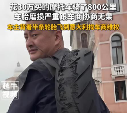 遇到狠人了!一位博主花 30 万在 4S 店购买了一辆宝马摩托车,结果只行驶了 800 公里,轮胎就出现了严重的磨损,找到 4S 店商讨没有结果,男子干脆办了签证,背着半条轮胎飞到意大利米兰摩托车展,找到宝马总部维权去了。 30 万买辆宝马摩托车,换谁都得当成宝贝疙瘩。2025 年初,车主陈先生斥资这笔不菲的费用,从国内 4S 店提回了心仪已久的宝马 1300GS ADV 摩托车。 他本以为能骑着这辆高端进口车,享受风驰电掣的骑行乐趣,没成想这份喜悦连三个月都没维持住。 车辆刚行驶到 800 公里这个近乎全新的里程数时,陈先生就发现前轮胎不对劲。 仔细检查后他倒吸一口凉气,崭新的轮胎不仅出现了明显的胎面掉渣,还布满了纵向裂纹,这种程度的磨损放在任何一辆新车上都显得异常刺眼。 按照摩托车行业的普遍标准,即便是经常跑烂路的拉力 ADV 车型,原厂轮胎也能轻松支撑 5000 公里以上,城市通勤场景下更是能达到 1-1.5 万公里的使用寿命。 更别提 1.6 毫米的胎纹磨损临界值,这辆车的轮胎连正常使用的基础都没达到,就已经濒临报废。 陈先生第一时间联系了购车的 4S 店,满心期待能得到合理的解决方案。可他没想到,等待自己的却是冰冷的推诿。 4S 店一开始直接抛出 “轮胎无质保” 的说法,完全无视车辆的新车属性和轮胎的异常磨损情况。 在陈先生的反复交涉下,店家才勉强同意更换轮胎,但拒绝承担 800 元的拖车费,只承诺会委托第三方机构进行检测。 这场看似有进展的协商,很快就陷入了无尽的拉扯。陈先生自行联系了广东一家专业检测机构,对方却以 “轮胎残体磨损过度、有效取样区域不足” 为由拒绝接手。 紧接着,4S 店切割了轮胎 50% 的样本带走,可这份承诺好的检测报告,硬生生拖延了 69 天也没个下文。 他试着联系轮胎制造商,对方却声称涉事轮胎是宝马采购的定制款,且疑似为淘汰品类,直接把责任推回给了宝马品牌。 这种维权无门的困境,其实是很多车主的共同遭遇。4S 店和厂家之间互相踢皮球,售后政策模糊不清,消费者往往因为缺乏专业知识举证困难,再加上第三方鉴定费用可能远超损失,最终只能无奈放弃。 换做普通人,可能早就被这场漫长的拉锯战磨掉了耐心。但陈先生偏不是轻易妥协的人,在国内维权屡屡碰壁后,他做出了一个让所有人都意想不到的决定。 他立刻着手办理签证,收拾好行李后,特意带上了那条残留的破损轮胎,独自一人飞往了意大利米兰。 当时,全球知名的米兰国际摩托车展(EICMA)正在举办,宝马总部的核心团队和高层都在展会现场。 陈先生直奔宝马展台,当着众多参展者和媒体的面,亮出了那条只跑了 800 公里就报废的轮胎,直接向品牌方当面质询。 网络舆论压力之下,宝马中国很快联系他,不仅报销了之前所有相关费用,还专门上门免费更换了一套米其林轮胎。 陈先生的这场跨国维权,不仅是为了给自己讨回公道,更揭露了跨境消费中存在的售后黑洞。 这件事也给所有车企敲响了警钟,消费者的信任从来都不是理所当然,只有正视质量问题,完善售后体系,才能真正留住用户。 对于广大消费者来说,陈先生的经历也提供了一种维权思路:面对不合理的推诿和敷衍,与其被动等待,不如主动出击。 哪怕是面对宝马这样的国际大牌,也能争取到应有的公平。