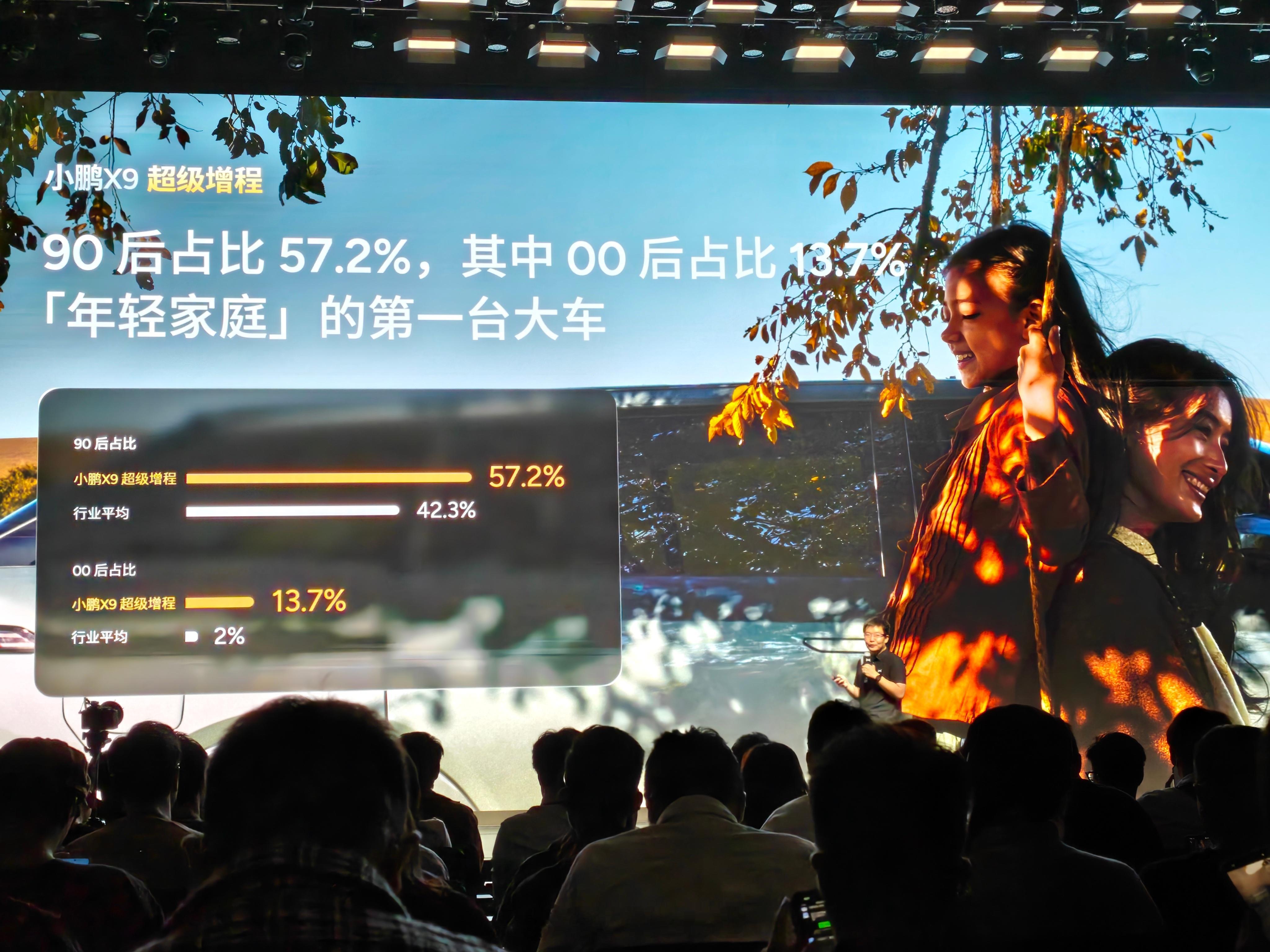 到了小鹏 X9 超级增程用户画像交流会现场,90 后占比 57.2%,00 后也有 13.7%,看来现在买 MPV 的年轻人,真的越来越多了。