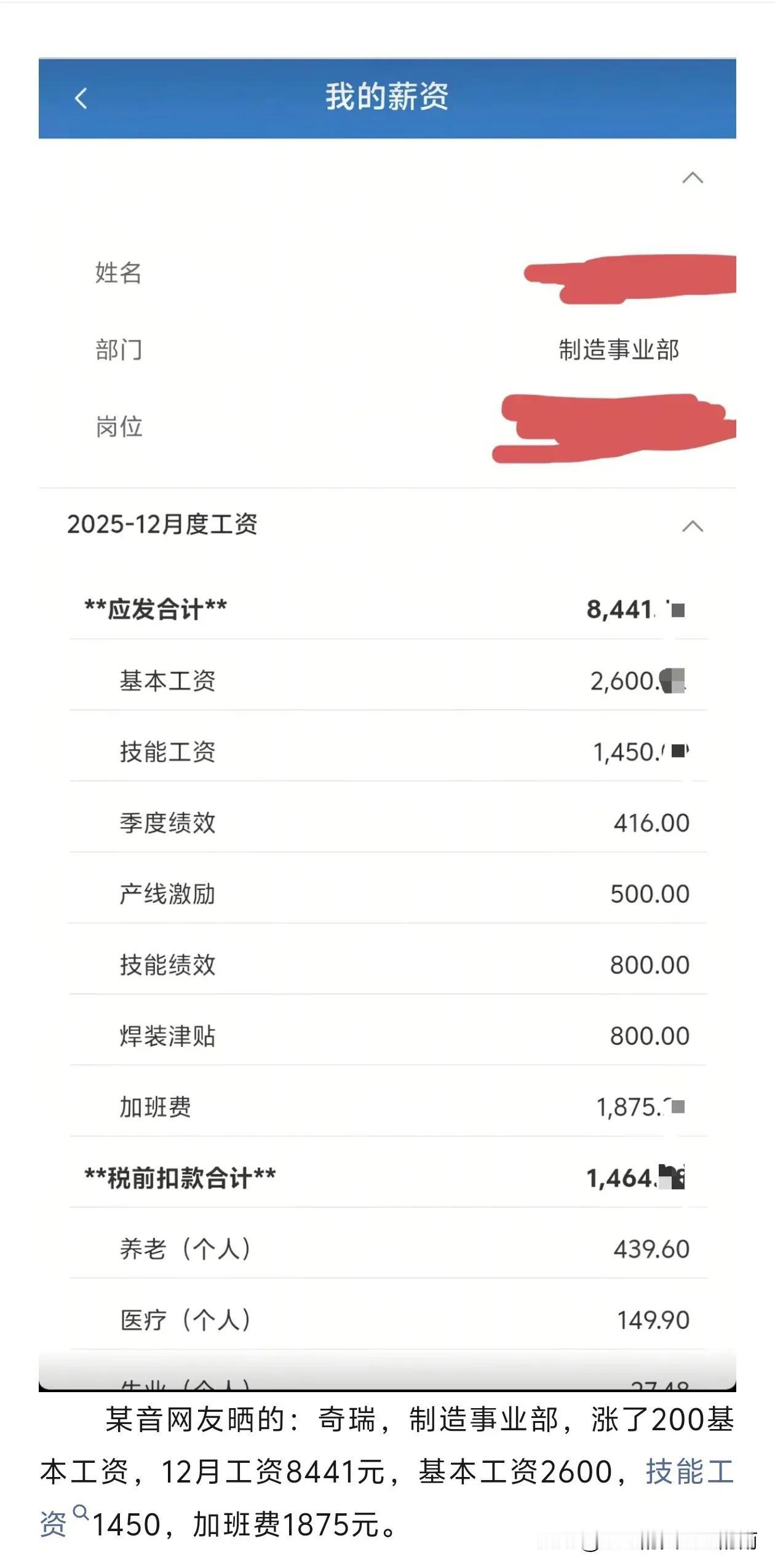 奇瑞某员工,2025薪资!