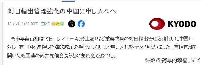 还在嘴硬!据共同社报道,高市早苗于1月19日再次对中国提出抗议。她说:“对于中国加强了稀土等重要物资对日出口的管理,我将与志同道合的国家合作,要求中方不要将此作为经济施压的手段。” 高市早苗这一番言论,可谓是颠倒黑白、无理取闹,让人不禁想问,高市早苗究竟是哪来的“底气”,敢如此罔顾事实地对我们指手画脚?事情的起因,还要从日本商界的“焦虑”说起。 此前,筒井义信等人曾试图在1月中旬访华,希望就稀土等物资进口问题与中方沟通,结果吃了“闭门羹”。如今,日本企业对稀土等物资的需求可谓是“迫在眉睫”,中方加强出口管控后,日本相关行业面临严格筛查,军用稀土“颗粒无收”,民用稀土申办手续繁琐且耗时漫长。 甚至有日本方面无端猜测,称中方海关在“故意拖延”清关手续。这种说法,简直是“欲加之罪,何患无辞”。众所周知,稀土是一种重要的战略资源,在汽车、半导体等众多高科技产业中有着广泛应用。 而日本,作为一个资源匮乏的国家,对稀土的进口依赖程度极高。据日本能源金属矿产资源局统计,2024年中方稀土占日本稀土进口总量的71.9%。可以说,中方稀土对于日本的王牌产业,如汽车、半导体等而言,犹如“生命线”一般重要。 如今,这条“生命线”因日本自身的错误行为而面临“收紧”,日本商界自然是“心急如焚”,如同热锅上的蚂蚁,纷纷对高市早苗政府施压,要求其尽快解决问题。高市早苗似乎也“急昏了头”,竟妄图联合其他国家来向我们“施压”。 结合她计划在3月20日前后访美这一安排,不难推测,她口中的“志同道合”的国家,大概率就是美国了。然而,高市早苗想借助美国之手来解决问题,这无异于“异想天开”,是打错了如意算盘。 首先,我们加强对稀土等两用物项的出口管制,是完全正当合理合法的行为。商务部新闻发言人早已明确指出,日本领导人近期公然发表涉T错误言论粗暴干涉我方内政,性质和影响极其恶劣。 为维护国家安全和利益、履行防扩散等国际义务,中方依据《出口管制法》等法律法规采取措施,是“师出有名”,他国无权干涉。高市早苗若想让我们“撤回”相关措施,却不反思自身错误,这不是“痴人说梦”吗? 其次,美国真的会在此时“伸出援手”吗?答案恐怕是否定的。当下,特朗普正忙于西半球事务以及格陵兰相关事宜,可谓是“自顾不暇”,哪有精力来管日本的“闲事”。而且,美国向来是以自身利益为优先。 就算想插手,也会考虑是否符合其自身利益,未必会真的为了日本而与我们“硬碰硬”。高市早苗把希望寄托在美国身上,不过是“病急乱投医”,最终只怕是会“竹篮打水一场空”。 事实上,我们此次加强出口管制,对日本经济的影响已经开始显现。自消息传出后,东京股市两大股指接连收跌,丰田、本田等汽车股以及半导体板块部分个股纷纷下挫,投资者对稀土供应停滞将冲击企业生产的担忧日益加剧。 有日本智库专家警告称,若稀土出口管制持续一年,日本企业将遭受约2.6万亿日元的经济损失,日本全年实际国内生产总值可能会下降0.43%。如果这种情况持续下去,日本的汽车、半导体等产业真的可能会陷入“瘫痪”境地,届时日本经济将面临巨大危机。 高市早苗政府若想真正解决问题,而不是“火上浇油”,唯一的出路就是“悬崖勒马”,端正态度。应深刻认识到自身错误言论和行为对中日关系造成的严重伤害,及时撤回错误言论,以实际行动恢复中日关系的政治基础。 否则,一味地“执迷不悟”,只会让日本企业和民众遭受更大的损失,让日本在错误的道路上“越走越远”。我们一直致力于维护地区和平与稳定,但这并不意味着我们会容忍任何国家对自身和利益的侵犯。 高市早苗政府应当明白,与我们对抗没有任何好处,只有秉持着相互尊重、平等互利的原则,与我们友好相处,才是符合日本长远利益的正确选择。否则,等待日本的,将是更多因自身错误行为而带来的“苦果”。