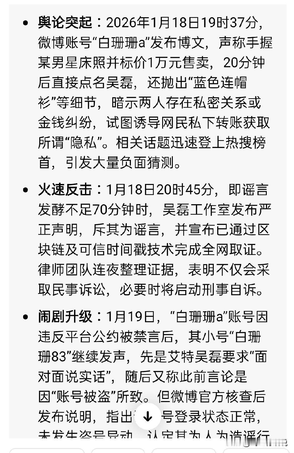 这个白珊珊a,竟然造谣吴磊,这下麻烦大了 不知道这个所谓的白珊珊a是什么动机,一个微博,造谣吴磊,不仅招来封号,而且自己还要面临吴磊一方的民事和刑事的官司 在网络上造谣中伤吴磊,影响很大,传播迅速,而且吴磊反应也极快,锁定了证据,直接委托律师进行下一步工作 这下这个白珊珊a慌了,谎称微博号被盗,不料官方随即拿出证据予以否定 仅仅一天多时间,这个白珊珊吗a就因为这一篇微博,自找麻烦 网上不是法外之地,个人必须为自己的言行负责 现在,估计也是后悔莫及 估计只是想蹭流,结果是超出了法律的界限 这也算是自作自受,如果吴磊一方不宽宥,能就必然会等到法院的传票