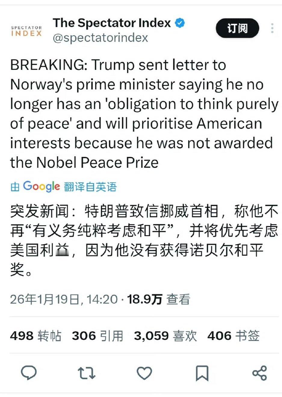 特朗普索要丹麦的格陵兰岛,要求挪威一定给他发诺贝尔奖(不然就不再追求和平),给瑞