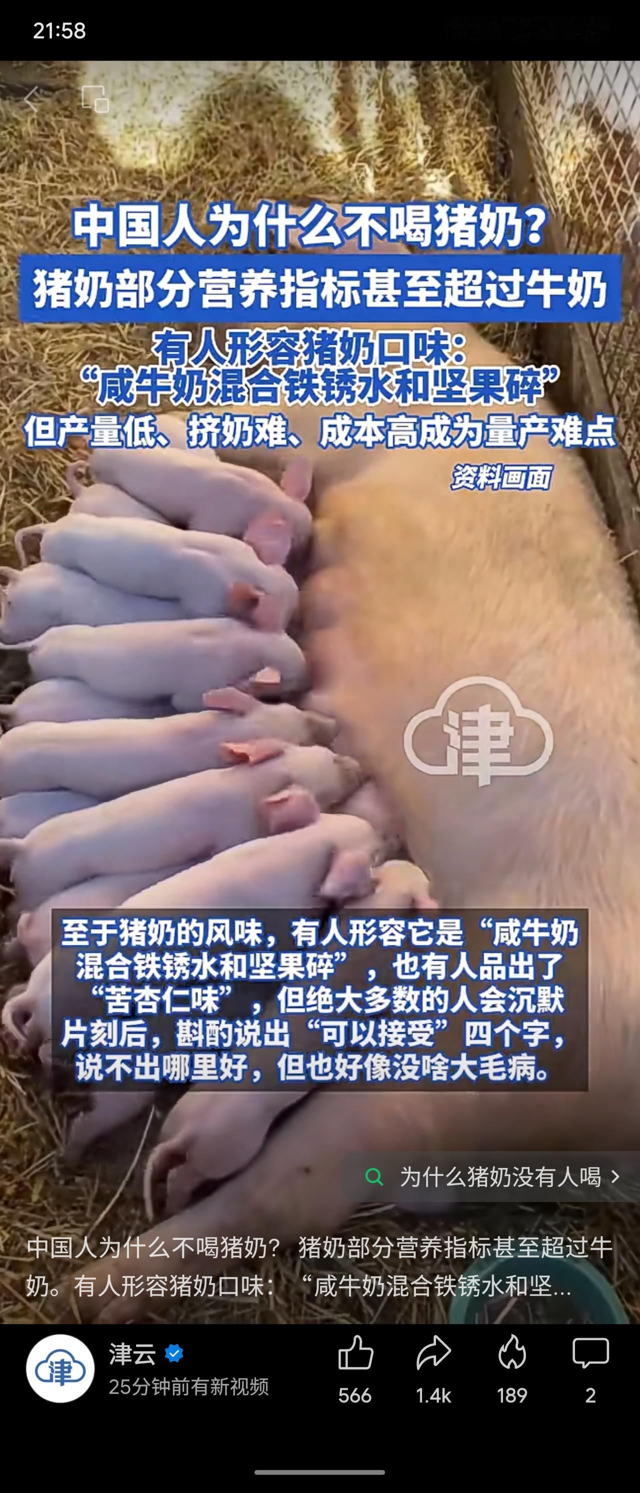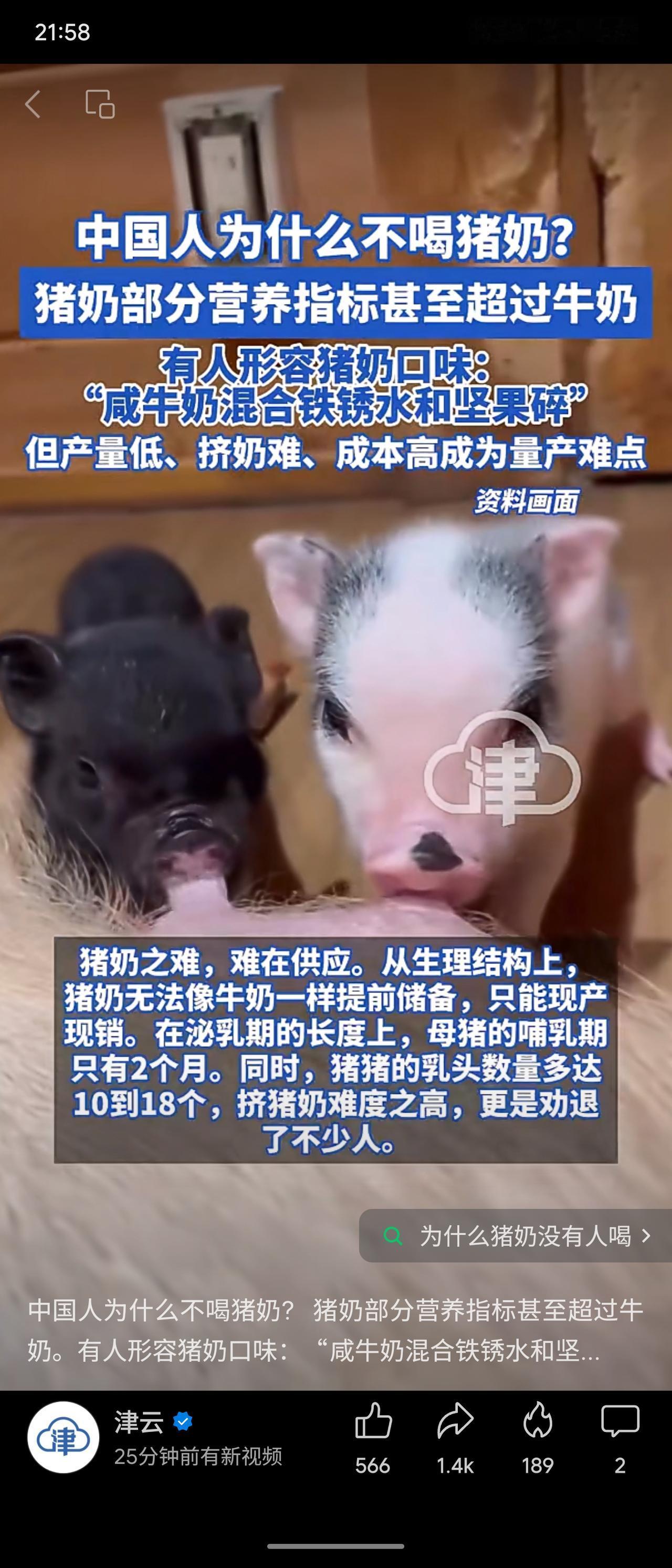 尽管猪奶部分营养指标(如蛋白质)优于牛奶,但其未能成为日常饮品的主要原因在于生产端的多重困难。母猪哺乳期短、无法储奶需现产现销,且乳头多而挤奶极为不便,导致产量极低、采集成本高昂。加之其口味独特(常被形容为咸腥混合坚果味),公众接受度低。综合技术、经济与文化因素,规模化饮用猪奶目前并不现实。