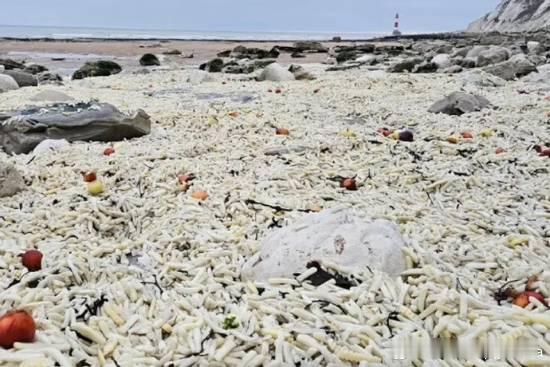 英国出现薯条海滩,海鸥开心英国南部苏塞克斯郡一段原本宁静的海滩,近日却突然出现了令人哭笑不得的一幕:大量薯条随着潮水被冲上海岸,密密麻麻地铺满沙滩,有的地方甚至堆积成层,远远看去仿佛一片“金黄色沙滩”。引来成群海鸥争相啄食,十分热闹。据英国媒体报道称,这些薯条并非游客随意丢弃,而是来自海上运输事故。此前,一艘集装箱货船在恶劣海况中丢失了约20个集装箱,其中一些装载的正是尚未加工的冷冻薯条以及大量塑料包装。随着海流和潮汐变化,这些货物被陆续推向英国海岸,最终在苏塞克斯郡的多处海滩集中出现,形成了罕见的“薯条登陆”景象。不少当地居民表示,最初还以为只是普通漂浮物,走近后才发现脚下踩的全是薯条和塑料袋。有居民形容,薯条在沙滩上铺得极开,混合着海水和泡沫,气味并不算刺鼻,但数量之多令人震惊。一些社交媒体照片显示,薯条与自然沙滩形成强烈反差,画面既滑稽又让人隐隐担忧。对于海鸥等海岸野生动物来说,这些突然出现的薯条无疑是一场“意外盛宴”。成群的海鸥在沙滩上盘旋、啄食,场面一度十分热闹,有人戏称这是“海鸥的梦想成真”。然而,环保人士很快提醒,薯条并非野生鸟类的天然食物,过量食用可能影响其健康,更严重的问题在于混杂其中的大量塑料包装,一旦被误食,可能对动物造成致命伤害。真正感到“梦想破灭”的,是负责善后清理的工作人员。当地政府表示,部分区域薯条和包装物的堆积厚度接近70多厘米,清理难度远超普通海滩垃圾。清洁人员需要在潮汐变化前争分夺秒作业,以免垃圾再次被海水卷走,形成二次污染。同时,政府也提醒市民和游客暂时避开相关区域,牵好宠物,避免误食或被隐藏在其中的杂物划伤。事实上,类似事件并非首次发生。过去,英国乃至欧洲多地海岸都曾出现过因集装箱坠海而被冲上海滩的洋葱、香蕉或其他货物。