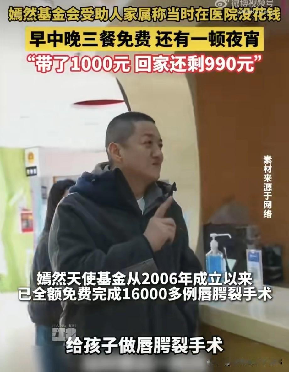 你敢相信?带1000块去医院,出来还能剩990。 我原本以为这是一个梗,没想到这却是嫣然天使儿童医院实实在在的行动。有的人会说虽然医院做好事是好的。但是想说医院想长期运营,想能帮助更多的人,那就医疗费减免,其他的费用在家属能力范围内,那就还是收取一些吧。其实嫣然医院帮助的也确实都是穷苦人家,条件特别差的才全额免费➕补贴,条件好的也有全部自费的患者,都有审核的。