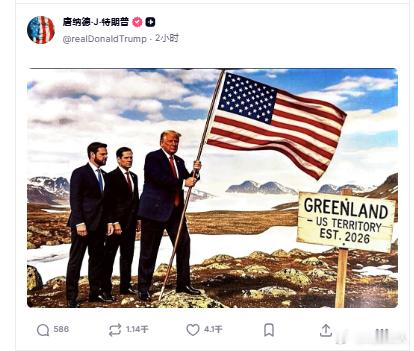 特朗普发登上格陵兰岛图川子今年是必须要拿下格陵兰岛了!今天在社交媒体上发了个自