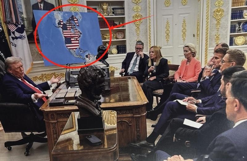 特朗普发登上格陵兰岛图 川子今年是必须要拿下格陵兰岛了!今天在社交媒体上发了个自己他手拿美国国旗登上格陵兰岛的图片,身后站着美国副总统万斯和国务卿鲁比奥,旁边指示牌上写着“格陵兰岛2026年成为美国领土”。川子原来就说过,这事儿对美国和世界安全都很重要,开弓没有回头箭……大家都觉的这是丹麦主权,但问题是现在川子不认为格陵兰岛属于丹麦,他说500年前丹麦一艘船到访后又离开不是丹麦拥有的依据,要以强硬手段获取产权……你看他发的第二张图片,和欧洲领导人会面,旁边那么大的地图中,整个北美+格陵兰岛都是美国的领土了,欧洲这些领导人不可能没看见,川普肯定是故意让他们看的,所以他们心里肯定也都有底了,知道川子志在必得,他们就配合派俩人参加军演反对一下就行,所以格陵兰岛今年可能真的会并到美国……特朗普 美国海外新鲜事