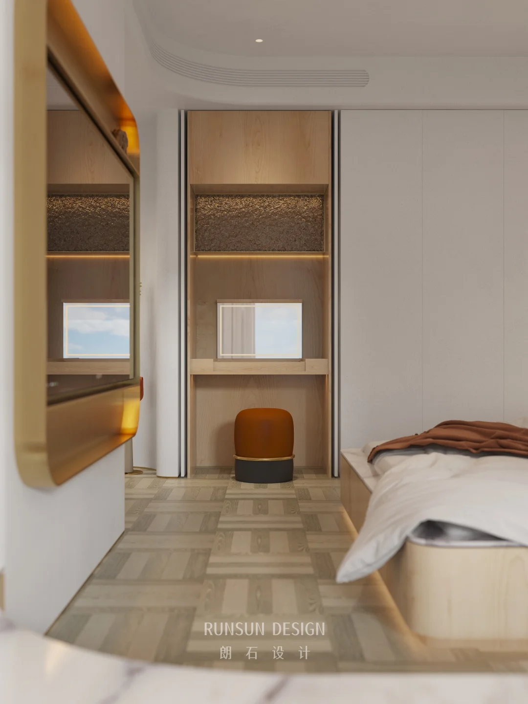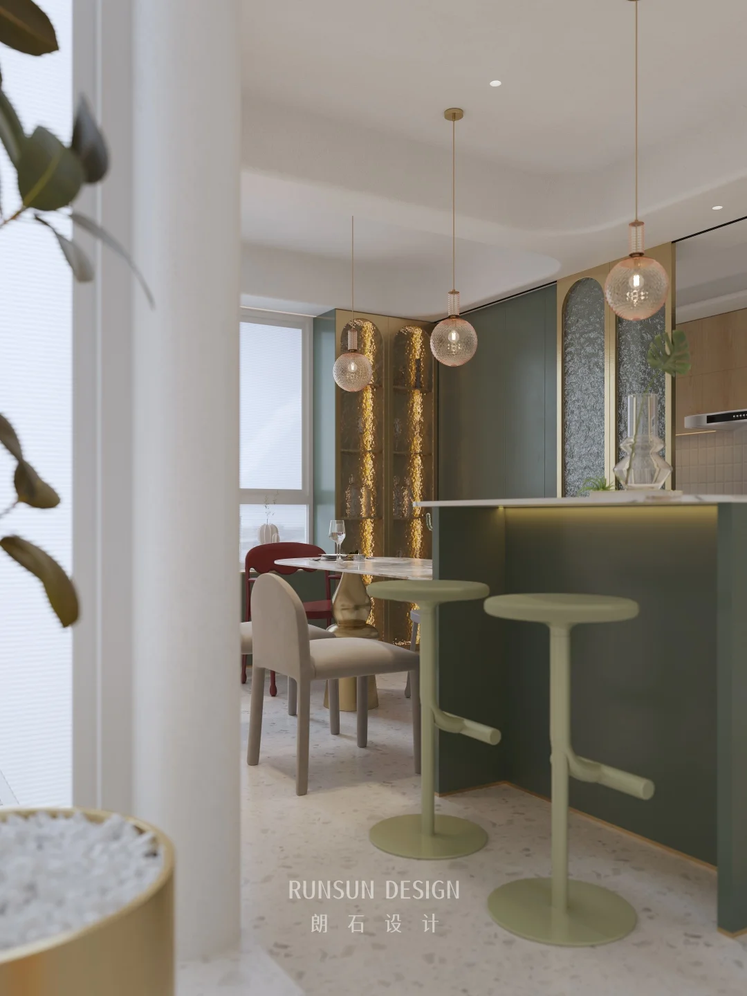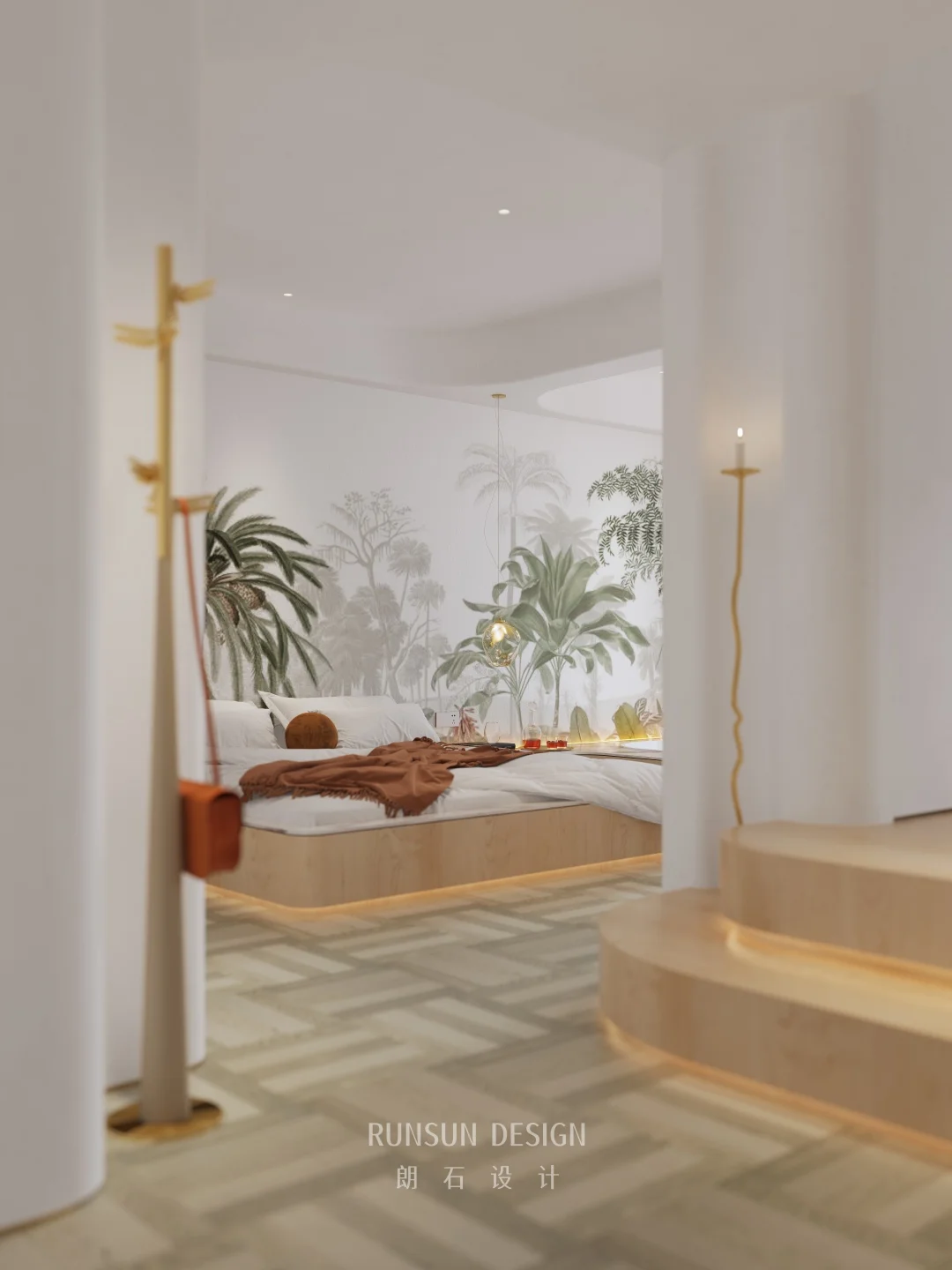 我们这套设计的核心是“自然感 + 松弛感 + 趣味性”的融合: ▪ 用圆角、弧形、柔和材质消解空间的硬朗感。 ▪ 用绿植、动物雕塑、自然主题软装唤醒亲近自然的本能。 ▪ 用低饱和色调与层次光影,让整个空间成为可以卸下疲惫的治愈场域。