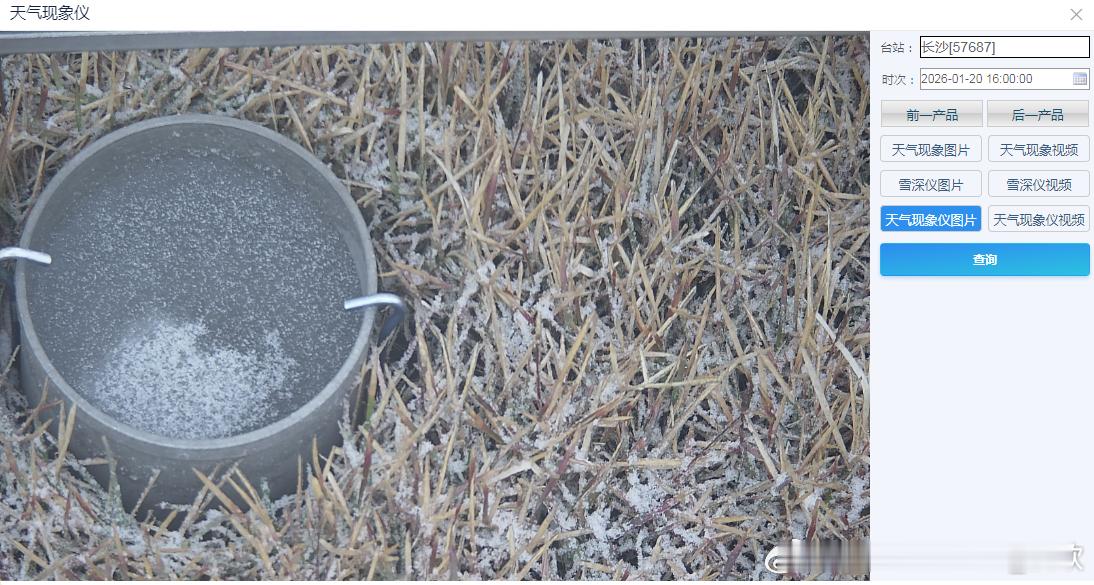 今天湖南的降水相态复杂多样,有雨,有冻雨,有雨夹雪,有冰粒,也有雪。图1-3为平江、长沙、双峰的气象观测站实拍图。可见草上有结冰情况,出现了冻雨。