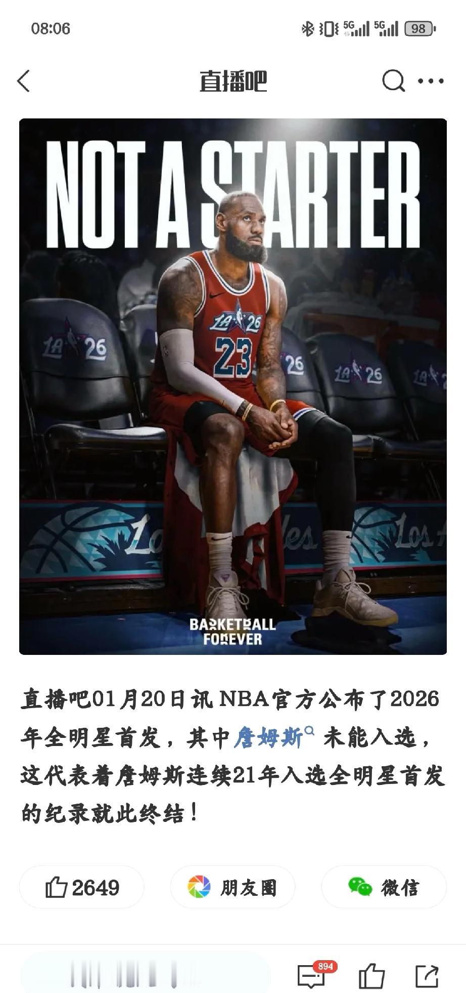 时代的交接总是悄然而至,詹姆斯连续21年全明星首发的神迹在今年落幕。因全明星投票规则改革以及伤病影响,他此次未能进入首发名单。但对于詹姆斯来说,参加全明星赛依然意义重大。作为极具商业头脑的球星,全明星赛带来的影响力和商业价值不容小觑,而且他也不愿轻易中断自己的全明星参赛纪录。