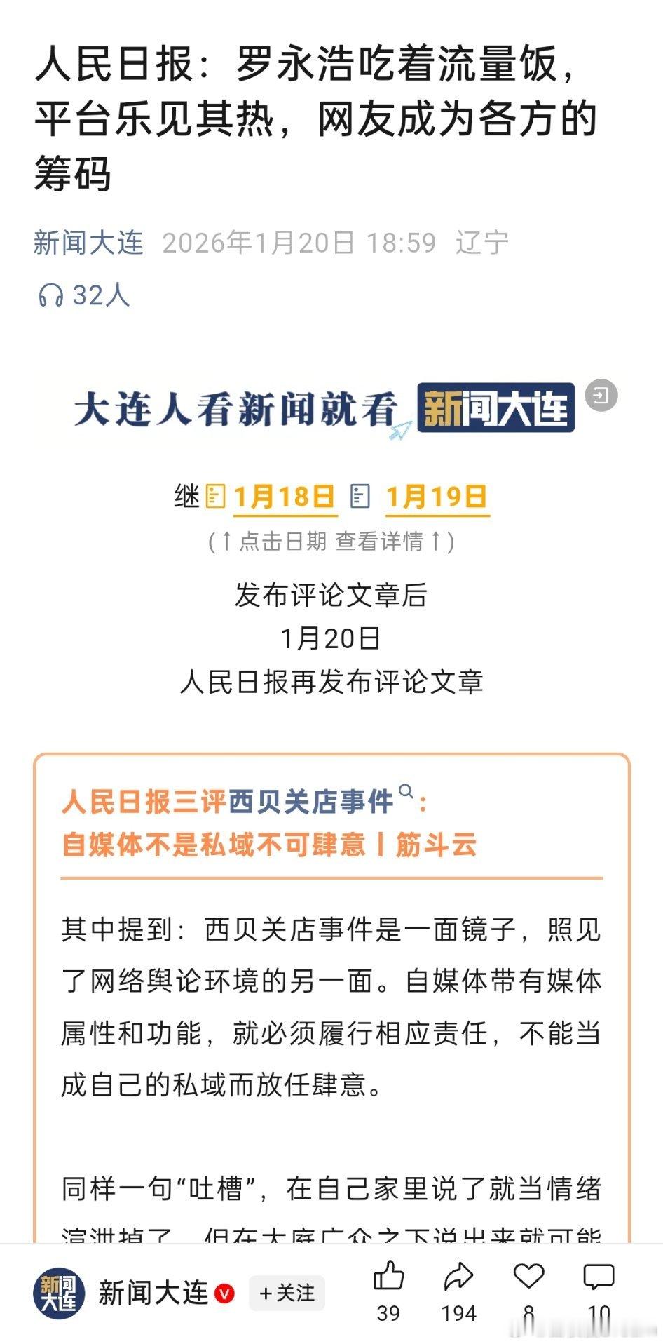人民日报三评西贝关店事件,罗永浩不妙啊。人民日报:罗永浩吃着流量饭,平台乐见其热,网友成为各方的筹码。
