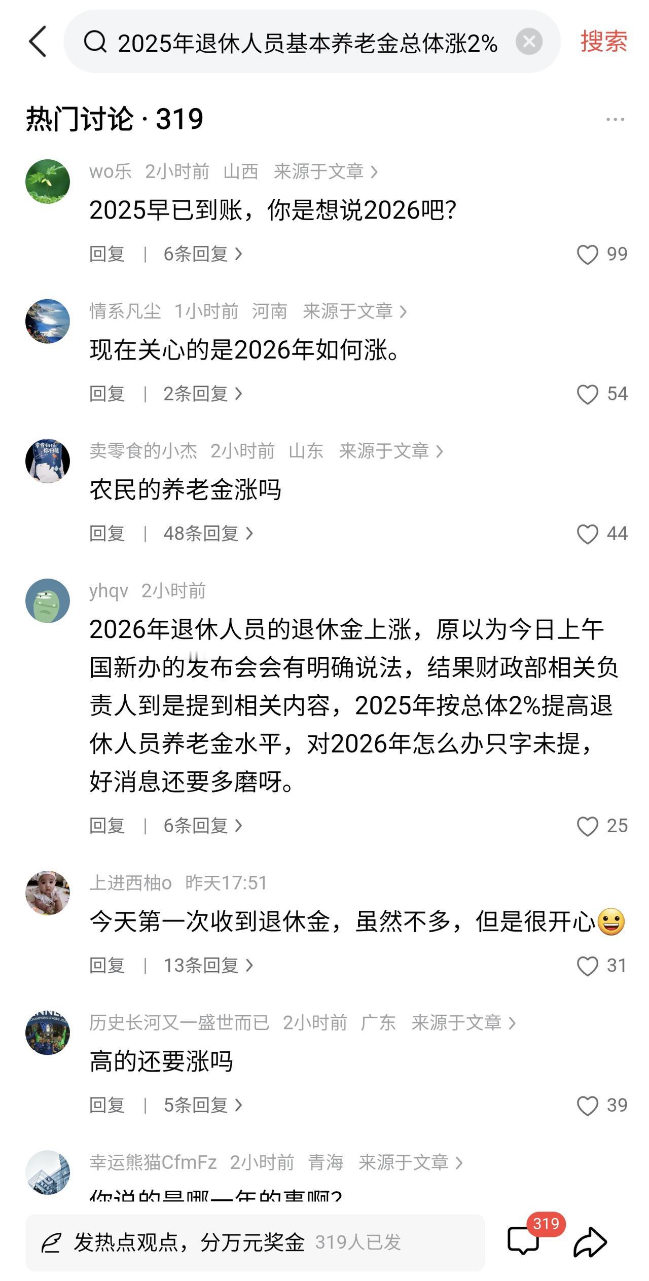 看到新闻报道涨养老金了,但网友普遍对养老金政策并不了解。其实虽然涨了,但是涨的幅度不一样,会重点照顾低养老金群体,提升幅度更高,高养老金群体提升幅度较低。 让DeepSeek 给大家分析一下吧: 涨养老金啦!但你发现了吗?有人涨3.5%,有人只涨1.8%? 其实,国家发养老金不是简单“普涨”一个数,里面藏着“公平”与“激励”的巧妙平衡! 通俗来说,就是:“保底 + 激励 + 关怀”三合一。 1. “保底”部分(定额调整):阳光普照 · 做法:每人每月先统一加一笔一样的钱,比如40元。这部分是“阳光普照”,人人平等。 · 效果:对原本养老金只有一两千的朋友来说,这几十块的“分量”很重,能有效保障基本生活,体现了公平。 2. “激励”部分(挂钩调整):多缴多得,长缴多得 · 做法:这部分和你过去的贡献挂钩。主要看两点: · 你交了多久:缴费年限每满1年,就多加一点(比如2元)。交30年就比交15年加得多,鼓励大家长缴。 · 你原来拿多少:按你现有养老金的一个百分比(比如1%)增加。原来基数高的,加得绝对金额也多,这体现了多缴。 · 效果:在职时交得多、交得长的人,涨得绝对金额会更多,这保证了制度的激励性,鼓励大家积极参保。 3. “关怀”部分(适当倾斜):特殊照顾 · 做法:对高龄退休人员(比如70岁以上)和艰苦边远地区的退休人员,会额外再多涨一些。 · 效果:对需要更多关照的群体给予特殊关怀,很有温度。 🌟 这样调,结果会怎样?(举个简化例子) 假设张阿姨退休金2000元,李伯伯6000元。 · 张阿姨涨得多:保底部分占她原来工资比例高,所以总的涨幅(比如3.5%)会比李伯伯高,这有助于缩小相对差距。 · 李伯伯涨得也不少:因为挂钩部分和他较高的基数挂钩,所以他实际到手的增加金额(比如110元)还是会比张阿姨(比如70元)多,“多缴多得”的原则依然看得见、摸得着。 简单说,就像单位发福利: 一份是“固定加薪”(人人有份保公平),一份是“绩效奖金”(按贡献大小有差异),还有一份是“特殊补贴”(给有需要的同事)。 这样一来,既照顾了养老金较低的朋友,让他们的生活更有保障;也没有让贡献大的人吃亏,鼓励大家未来多缴费、长缴费。它是一种动态的、精妙的平衡艺术。 今年的养老金调整已经陆续落地啦,快去看看您的养老金账目明细,是不是分成了这样几部分? 如果您想了解自己所在省市今年的具体调整金额,最好的方法是关注当地人社局(社保局)的官方通知哦! 大家都看懂了吗?您所在的地区今年是怎么调的?欢迎在评论区聊聊。